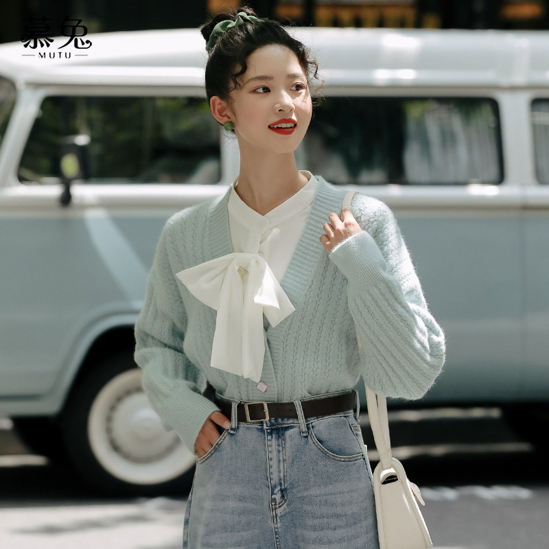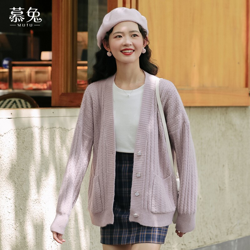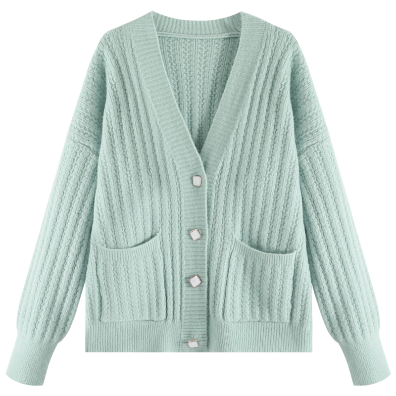 Small fragrant wind V collar knit cardiovert sweater woman early spring 2022 new loose foreign pie Lazy Long Sleeve Jacket Jacket
