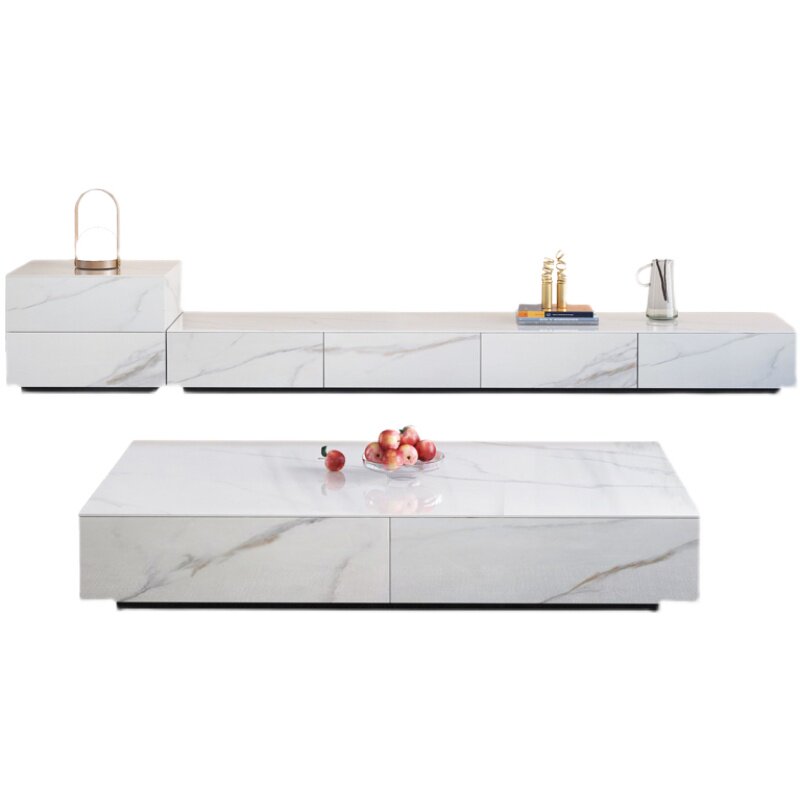 Living room complete set of furniture Italian minimalist coffee table TV cabinet dining table and chair combination all white modern minimalist 1 8 meters