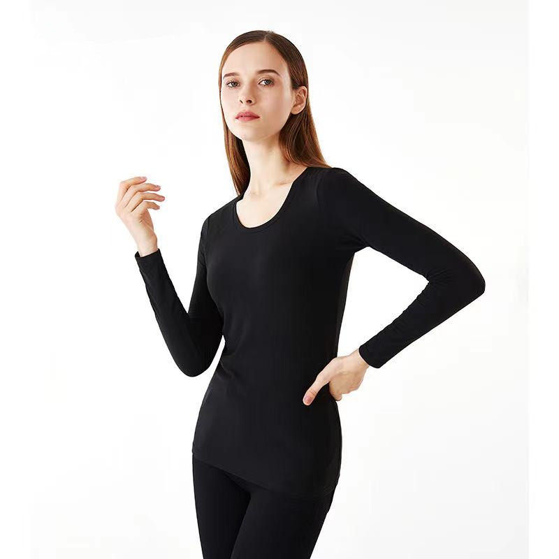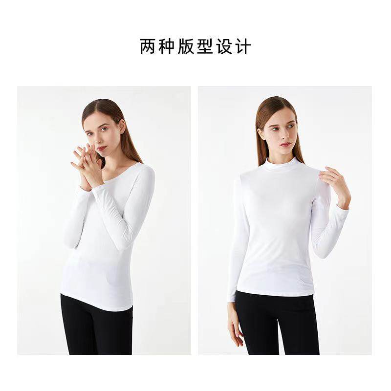 3 pieces) Ladies jersey undershirt body round neckline Semi-high collar Long sleeves Skin Autumn Clothes Without Sensation Wearing Inner Hitch Jacket