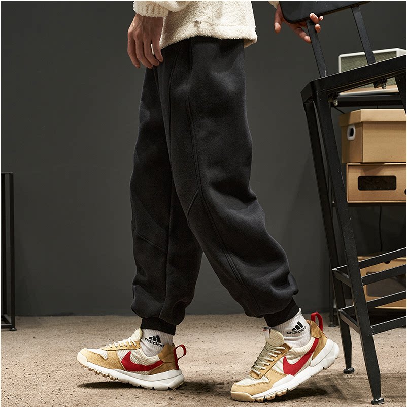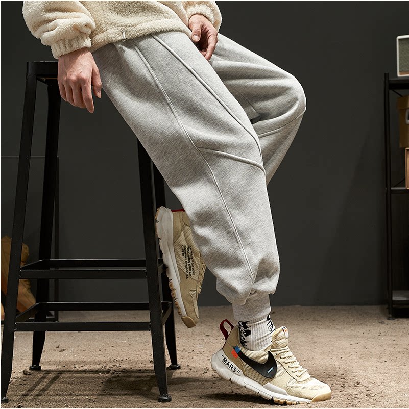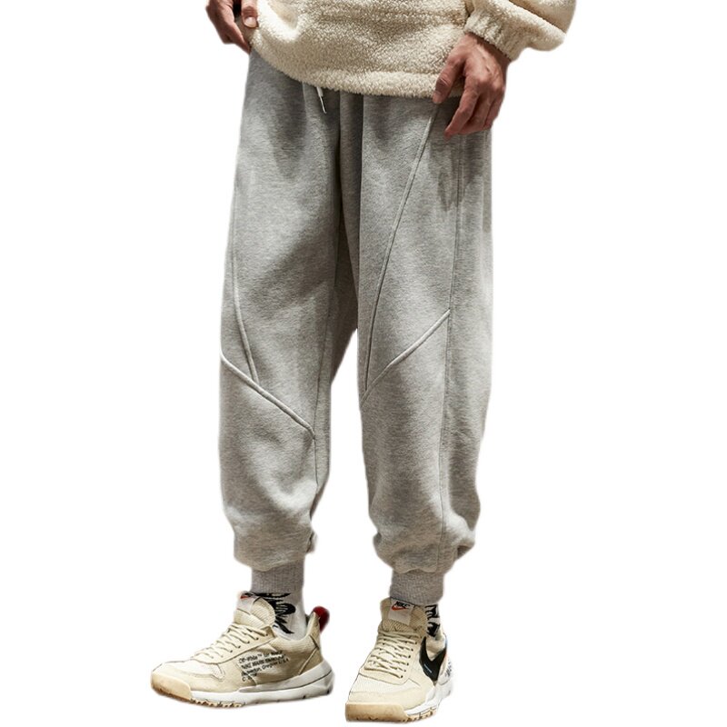 Tide brand sweatpants men's autumn Hong Kong style solid color stitching loose all-match overalls sweatpants trend casual beam pants