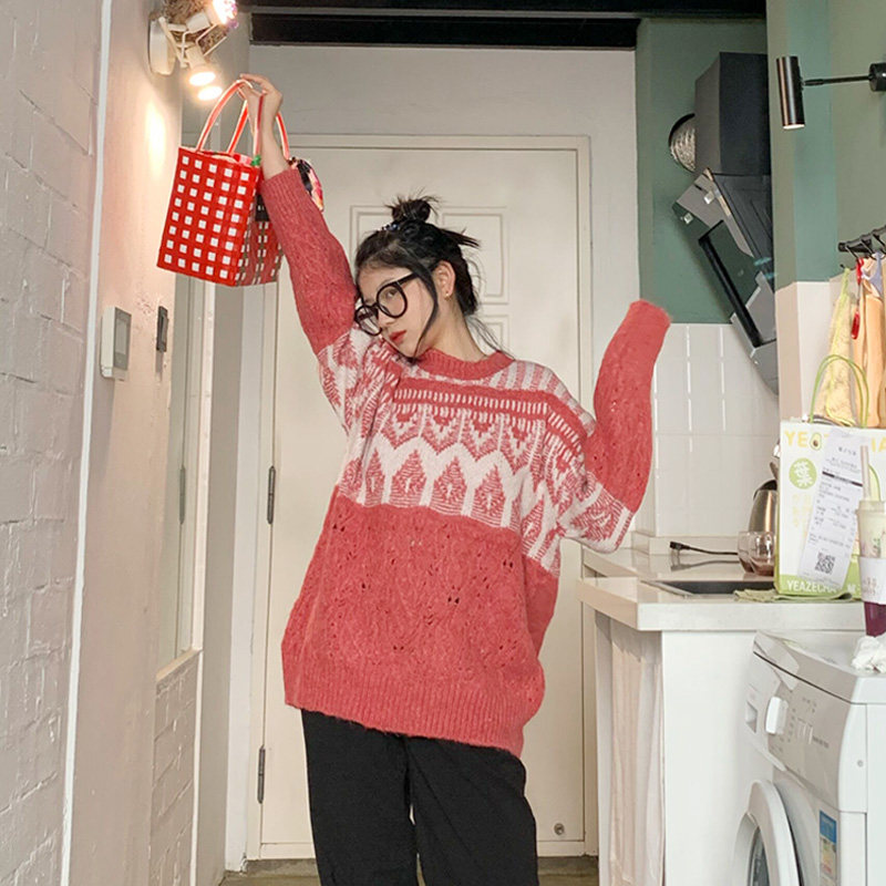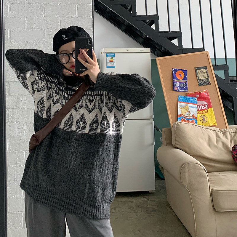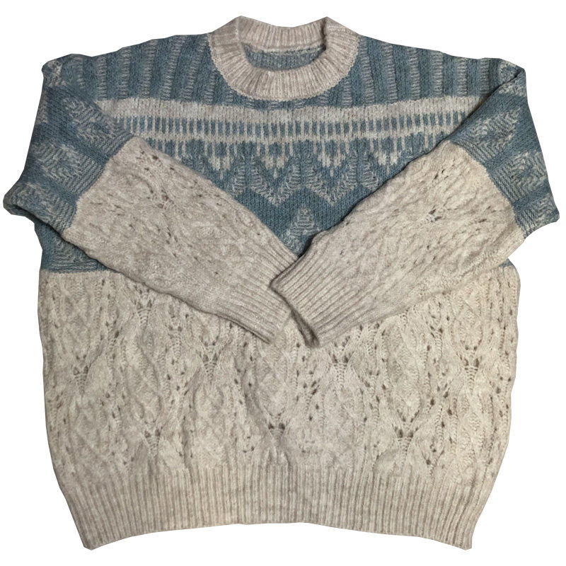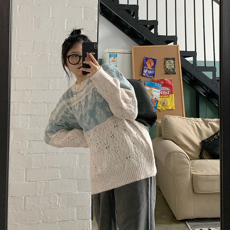 Generally cute sweater women's loose lazy style 2021 new spring and autumn outerwear splicing retro pullover sweater