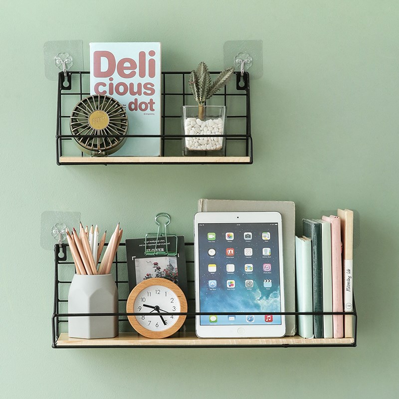 Bedside wall hanger free punch bookshelf storage wall rack hanging wall dormitory artifact upper bunk bedroom