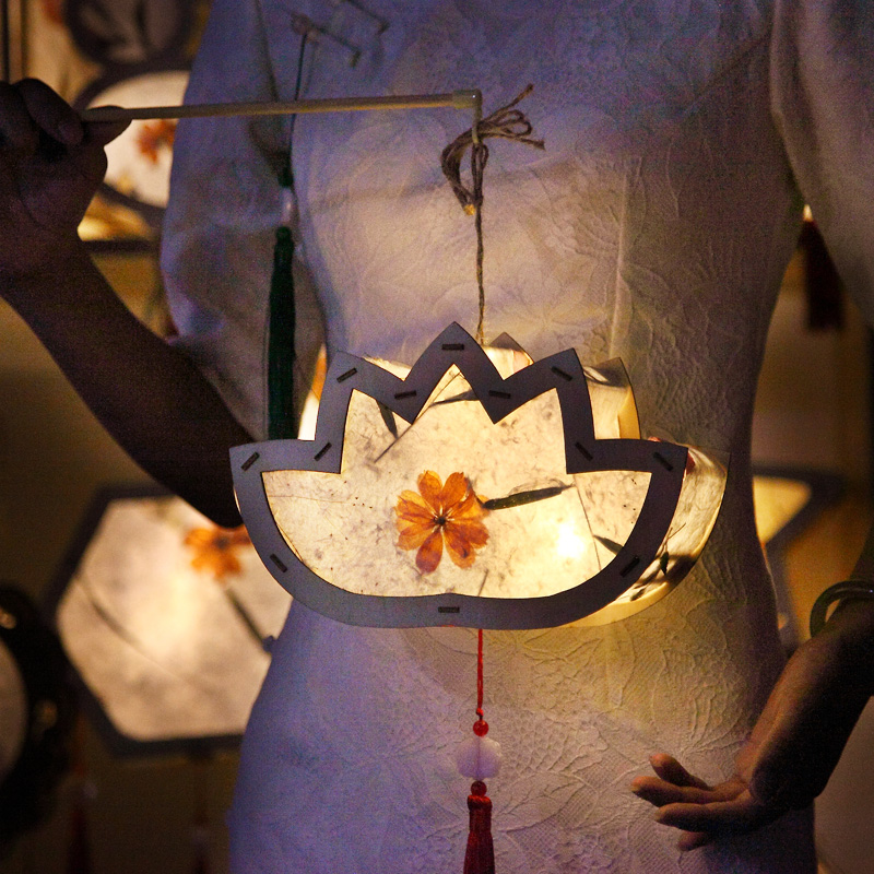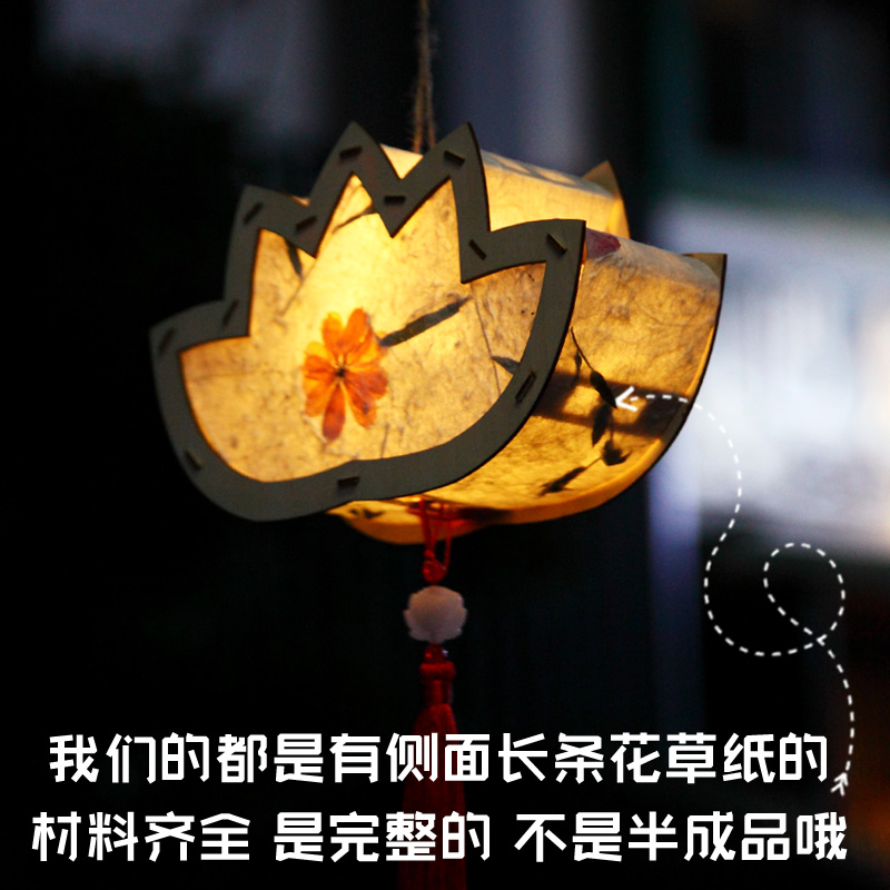 Mid-Autumn Festival diy handmade lanterns children's creative luminous lotus lanterns ancient style Hanfu portable palace lantern material package