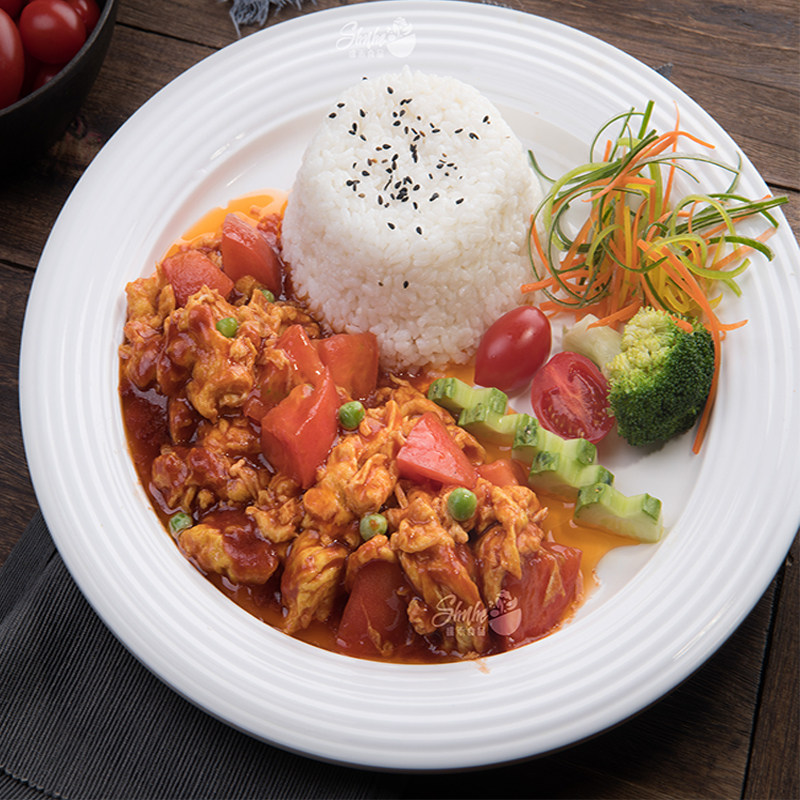 Tomato scrambled eggs with rice fast food frozen semi-finished dishes fast food delivery food package 240g10 bags for business use