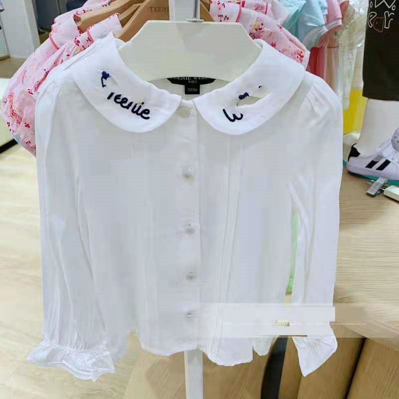 2021 autumn new girls' middle and big children's cotton good-fitting lapel shirts bottoming shirts fashion blue flower vests