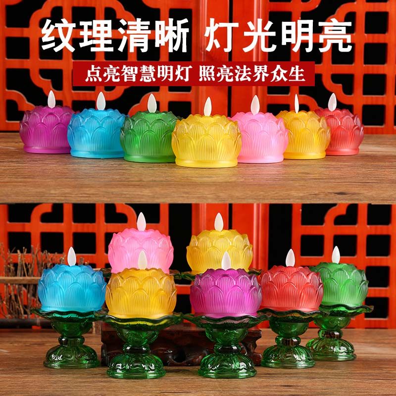 Lotus Lighting Household for Buddha Lightroom Pre-Buddha Electronic Candlestick Seven-Coloured Lotus Lotus Light to Provide Financial Lights
