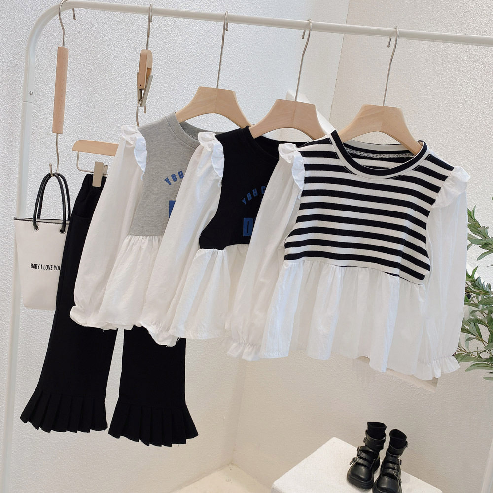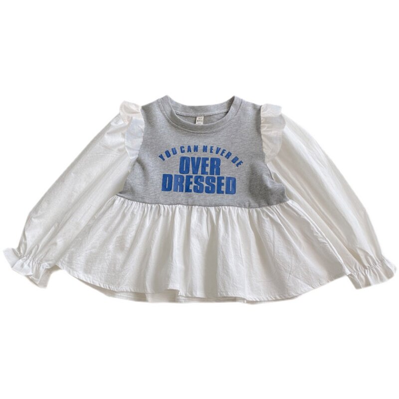 Girl Foreign Pie Shirt 2022 Spring Autumn New Korean Version Children's Bubble Sleeves Dress Shirt Baby Long Sleeve Blouse Tide