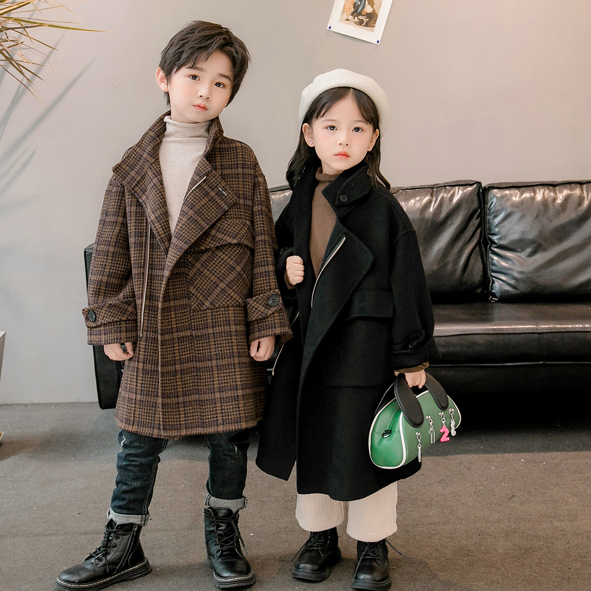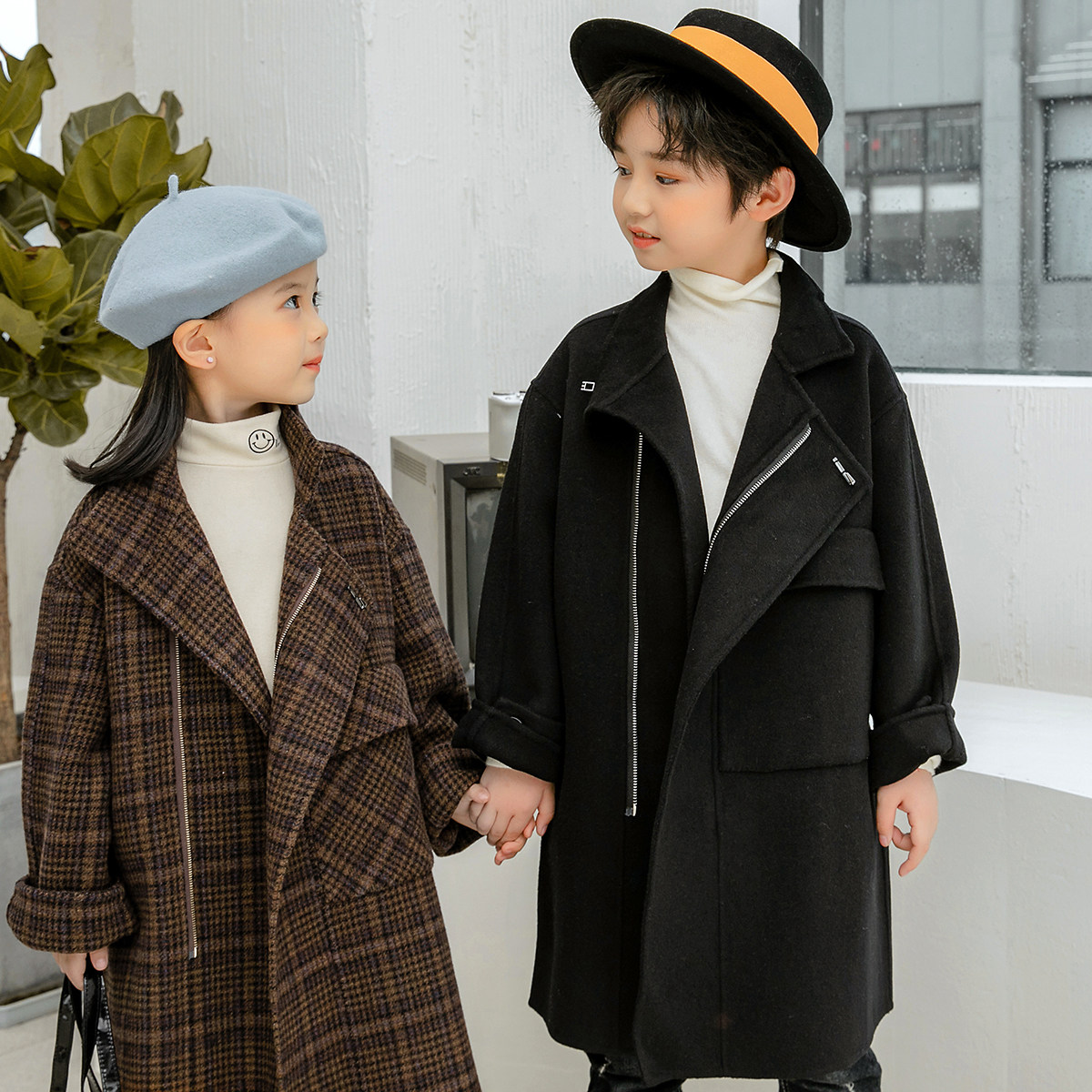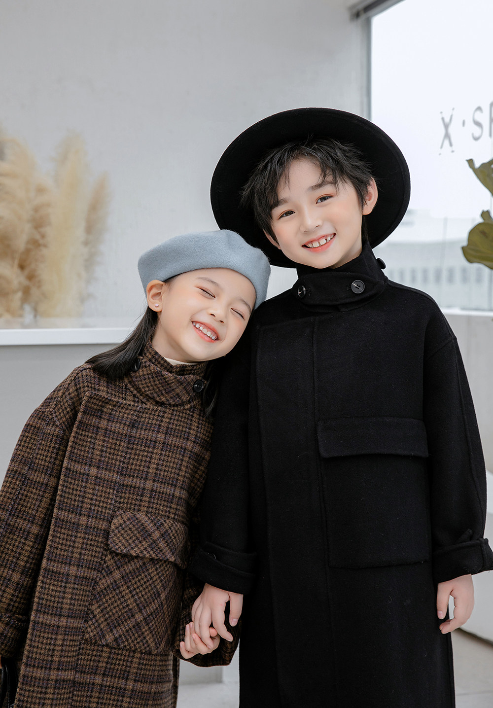 Children cashmere big coat boy 2021 winter new retro small upright collar medium long version double sided wool coat girl girl