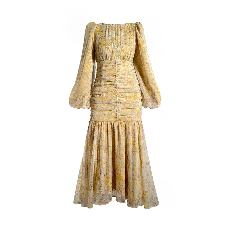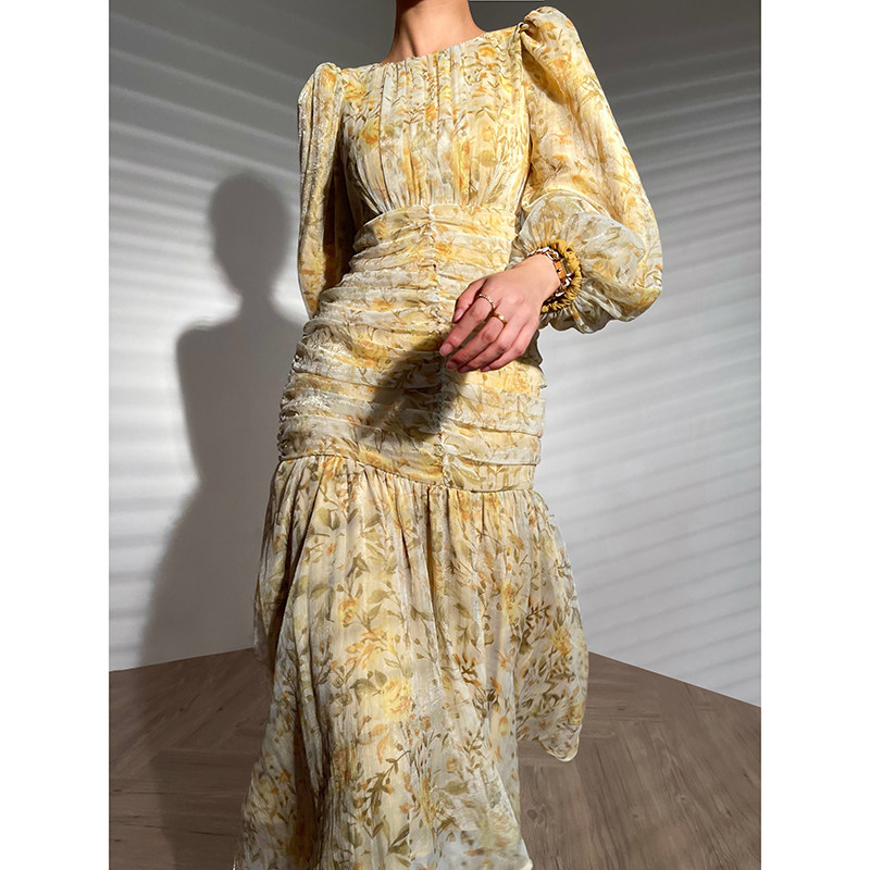 Aconiconi | French floral niche design sense dress early autumn new slim wrap hip fishtail midi skirt