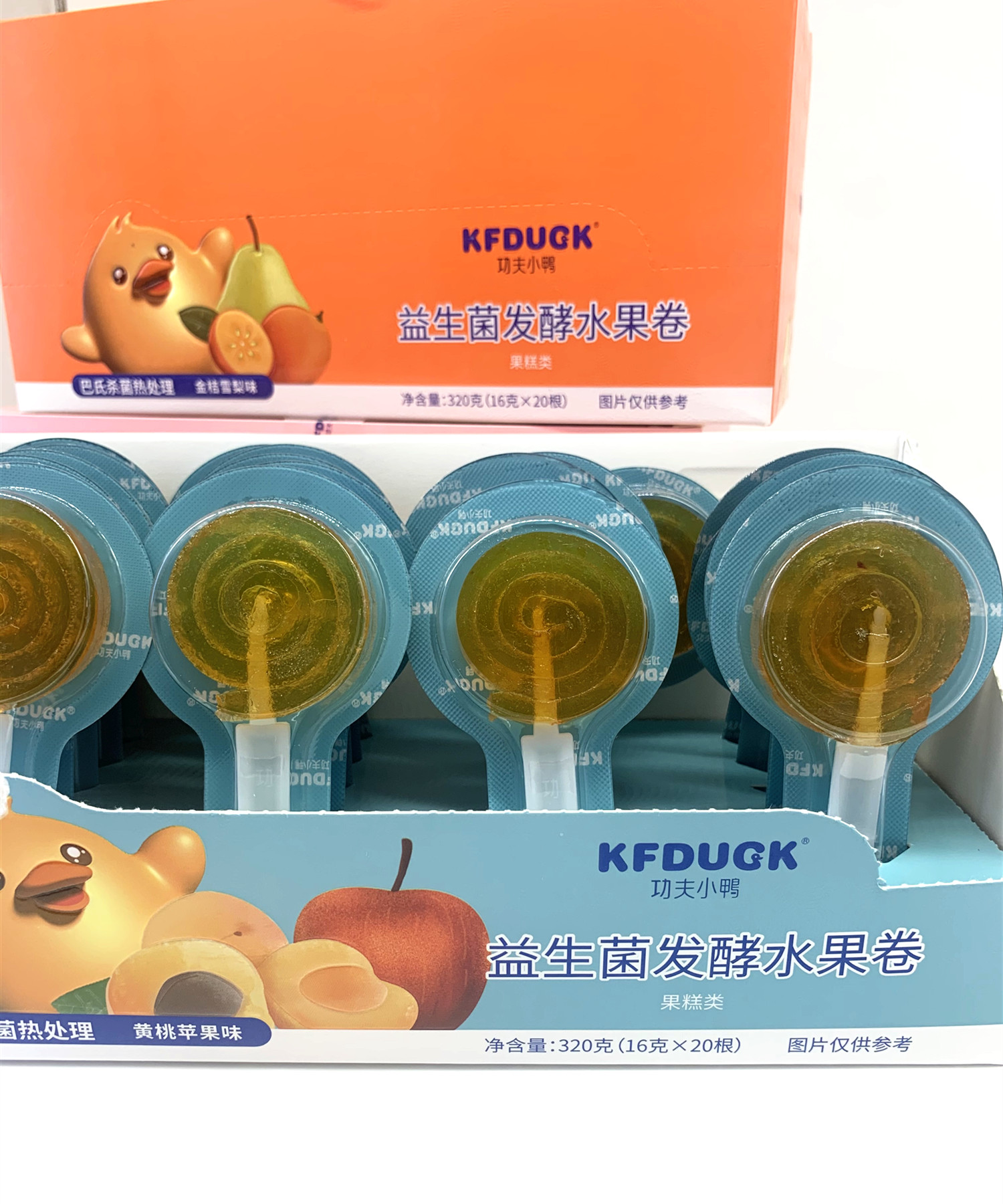 Kung Fu duckling probiotic fermented fruit roll baby snack hawthorn roll apple fruit bar fruit cake lollipop