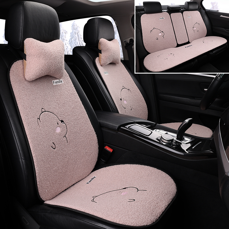 Haze blue three-piece set pink three-piece bean paste cartoon three-piece light gray three-piece taro powder three-piece light beige three-piece haze blue front and co-pilot, pink neck pillow for the front and co-pilot, neck pillow bean paste card