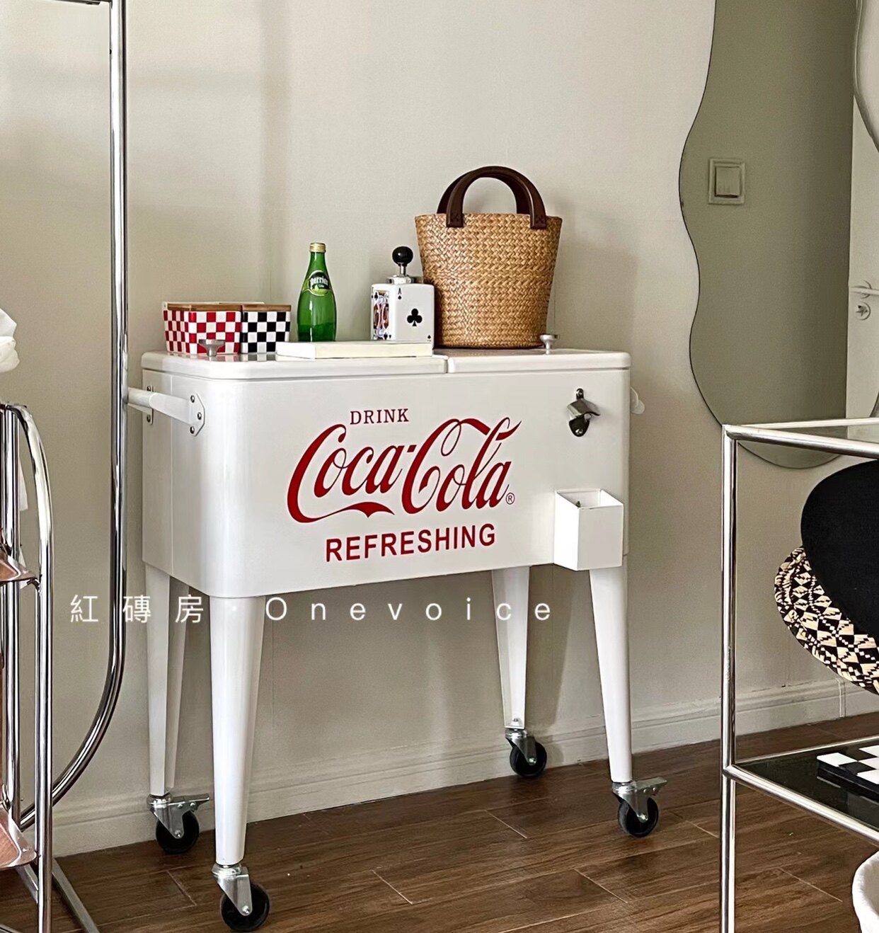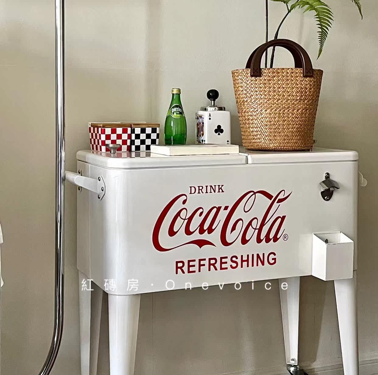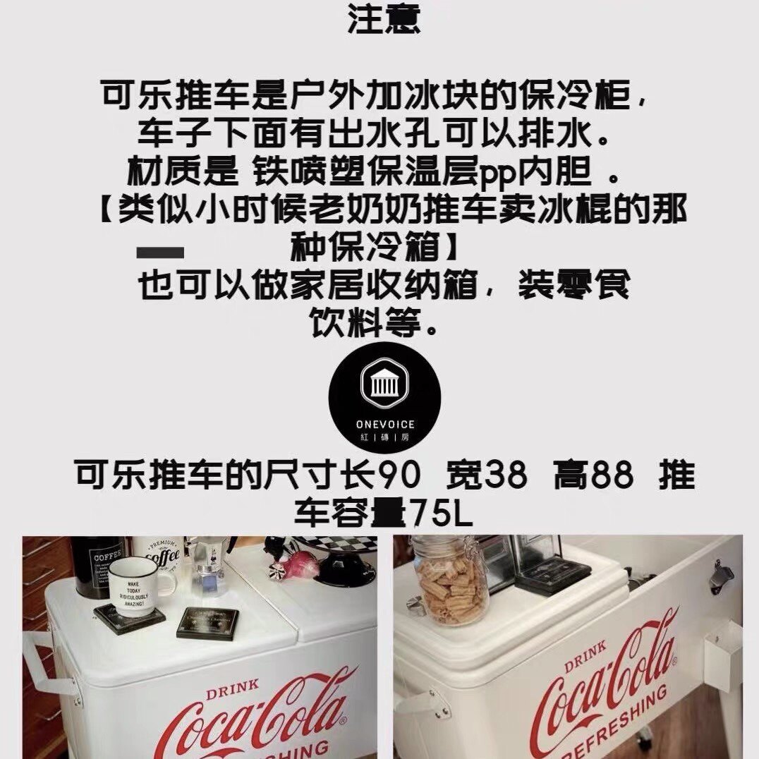 Red Brick House Onevoice Retro Coca-Cola Storage Cabinet No Electricity Cooler Cart Red White