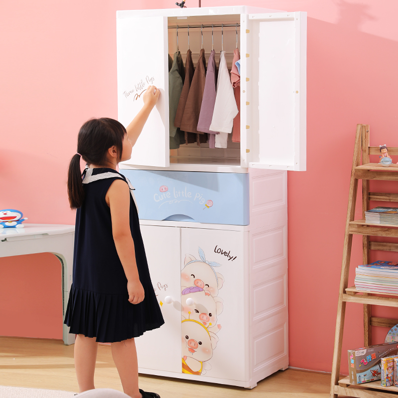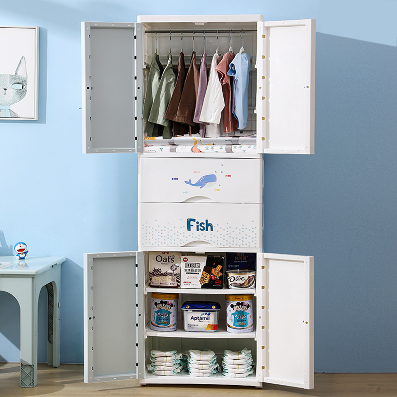Simple children's wardrobe double door thickening baby baby small hanging wardrobe home bedroom simple plastic storage cabinet