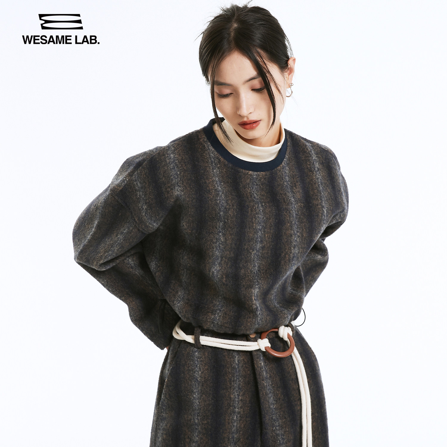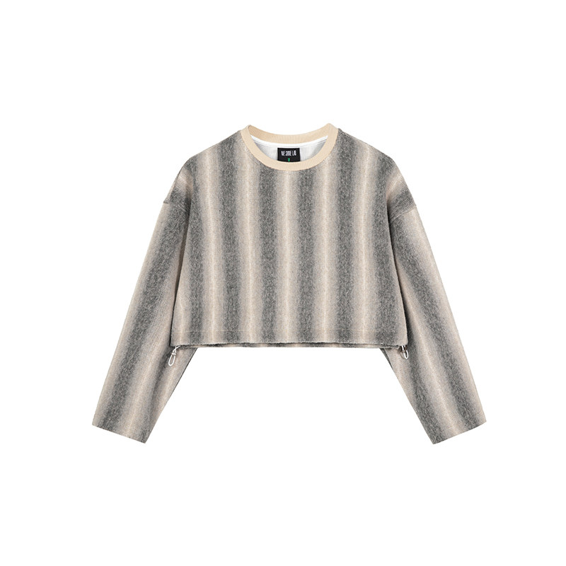WESAME LAB autumn long-sleeved thick cotton T short round neck outer wear new women's top loose woolen coat