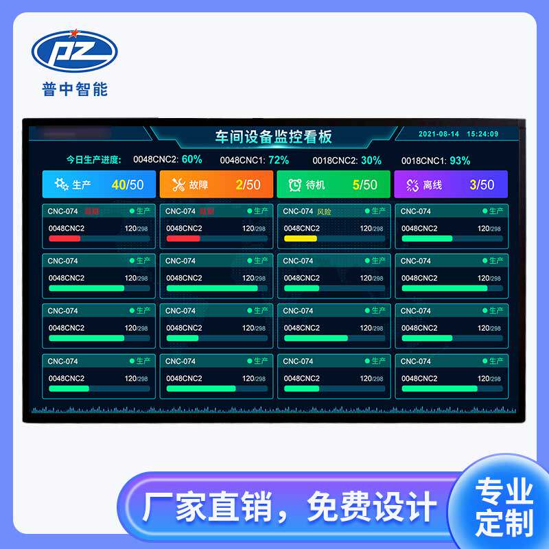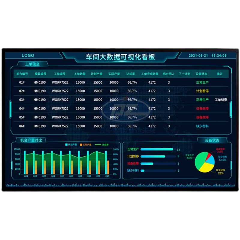 Workshop machine status equipment utilization rate real-time monitoring Kanban production line planning and scheduling data summary display