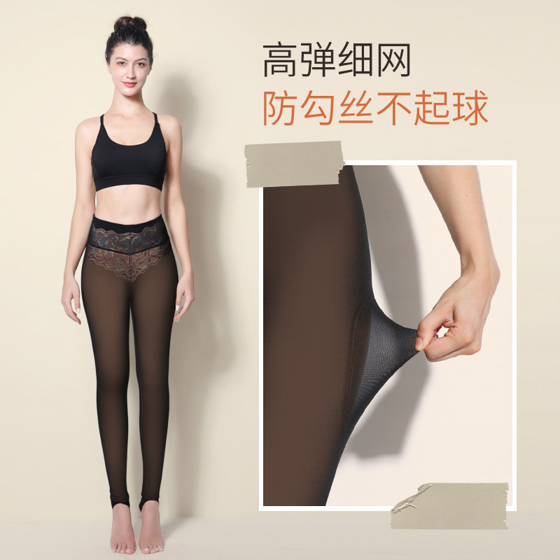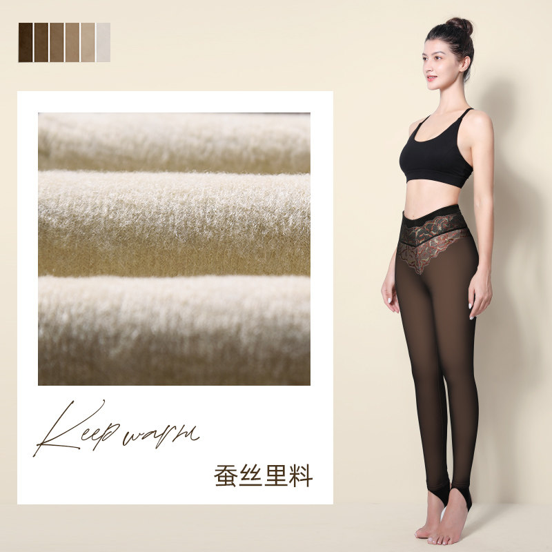 Autumn and winter underwear women's plus velvet thick outer wear high waist camel wool cotton pants foot silk trousers fake meat warm pants
