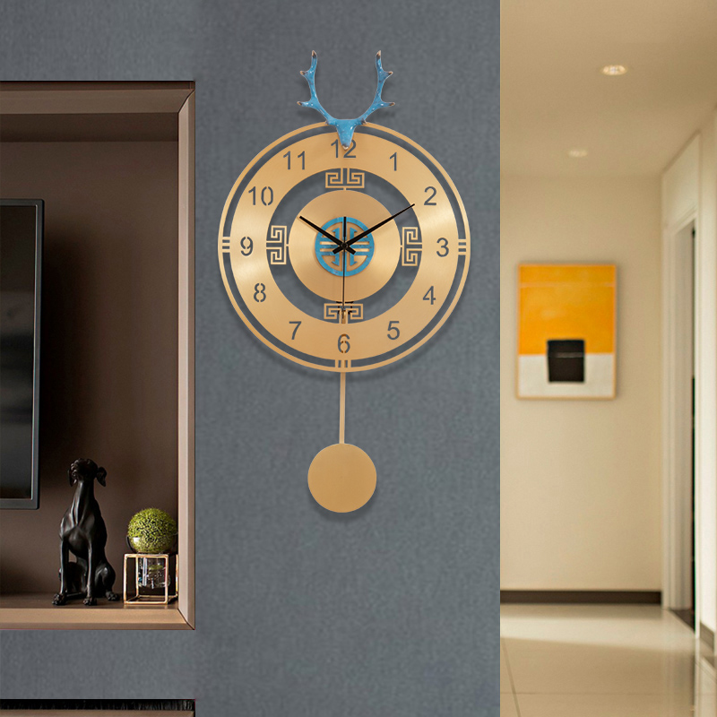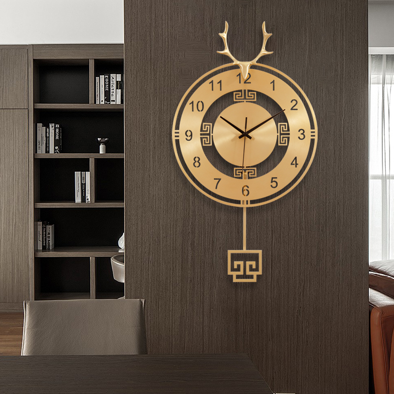 Nordic Pure Copper Deer Head Hanging Clock Living Room Home Fashion Quartz Clock Extremely Minimalist Watches Modern Light Lavish Hanging Wall Clock