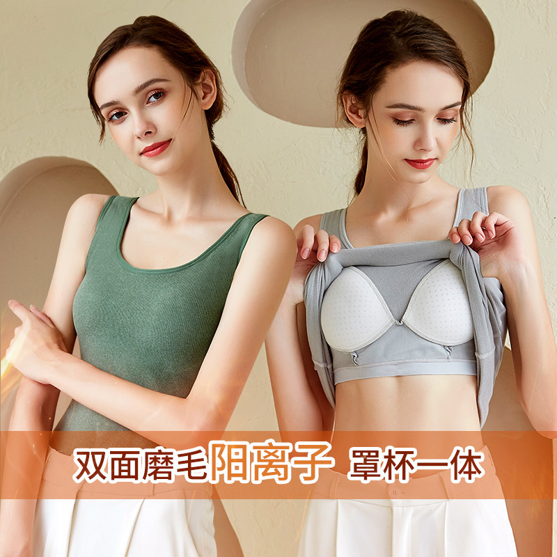 Female Cavet thickened warm shoulder strap chest cushion integrated close-fitting heat tight Develvet bottom autumn and winter heating clothes