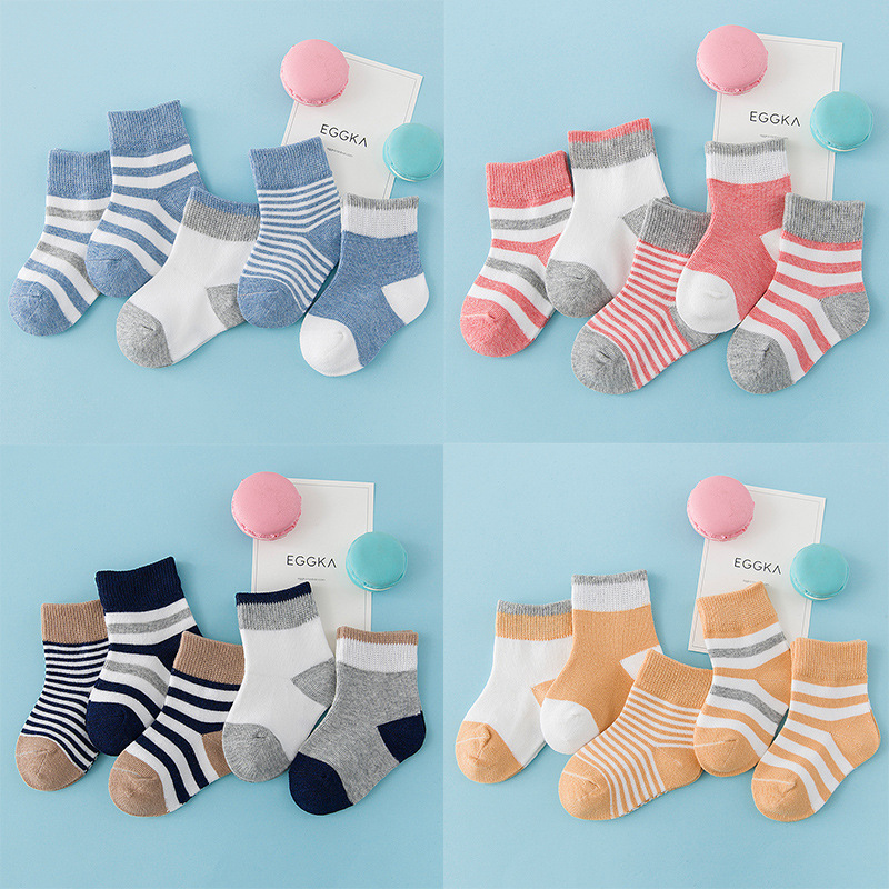 Children's socks autumn and winter pure striped children's socks boys and girls spring and autumn cotton baby socks mid-tube baby cotton socks