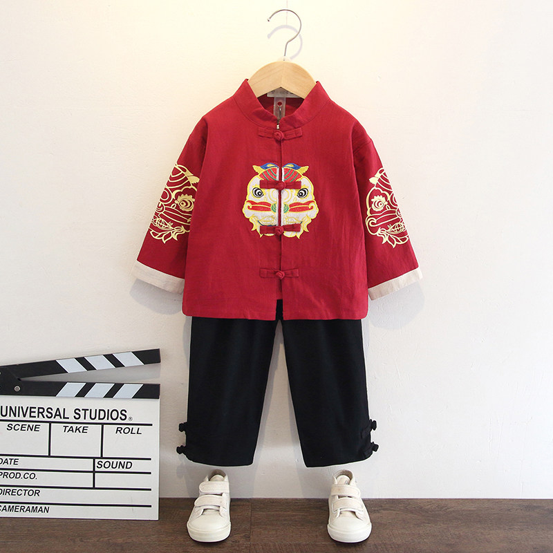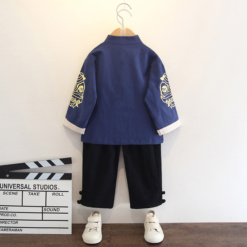 Boy Han uniforms Spring and Autumn season Chinese Wind Baby Down Children's Tang Bottling Children's Old Clothes National School Gown Suits New Autumn Clothing