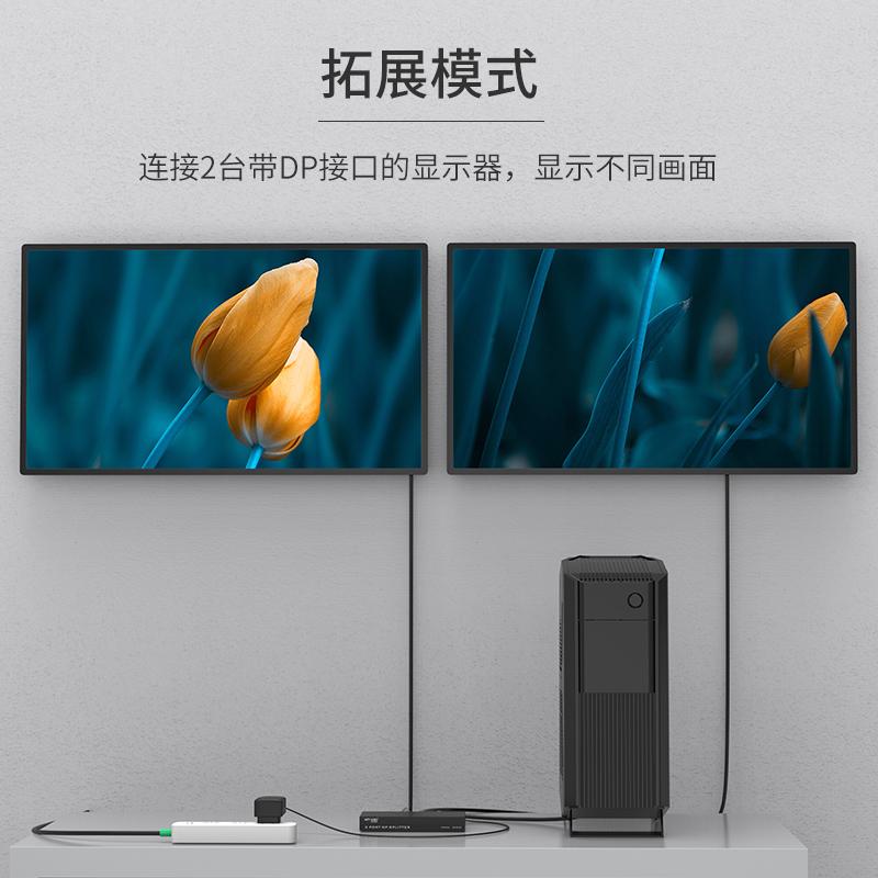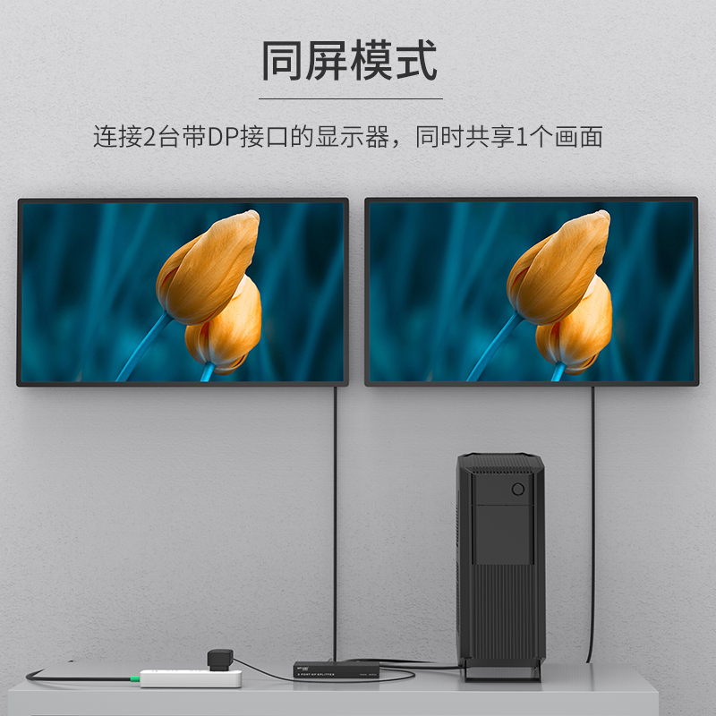 The Maituo Vmoments DP dispensers 1 in 2 out 10% Two high-definition 4k computers show the same screen split screen MT-DP102