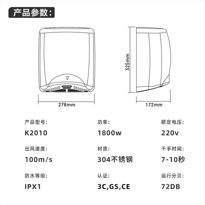 Dryer automatic induction toilet dryer dryer commercial stainless steel blowing hand dryer high speed dryer