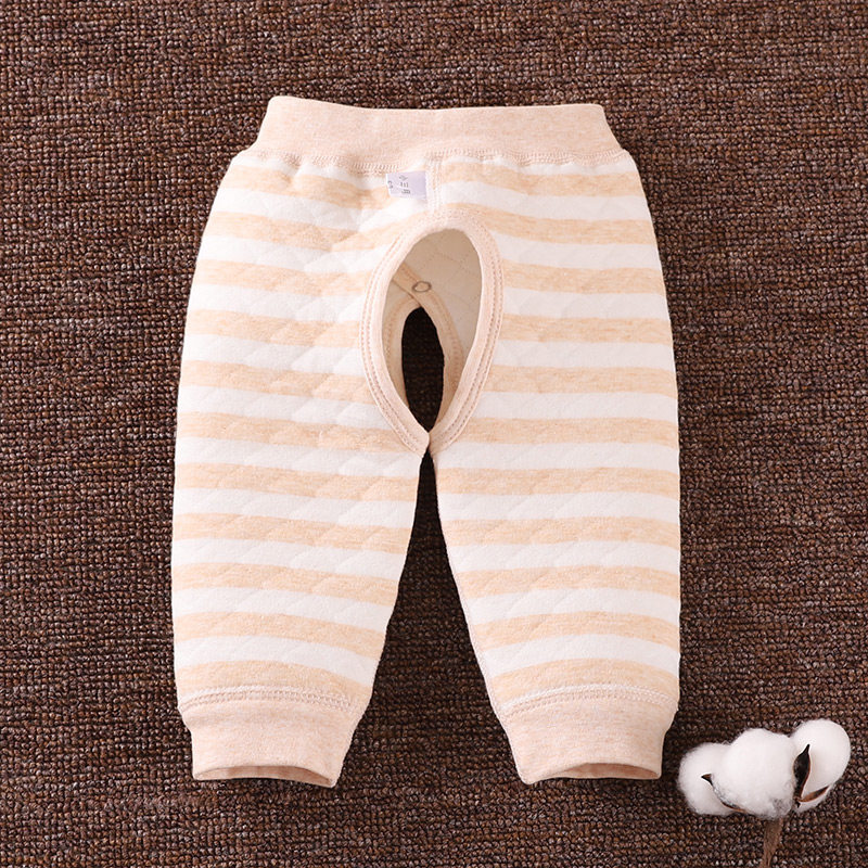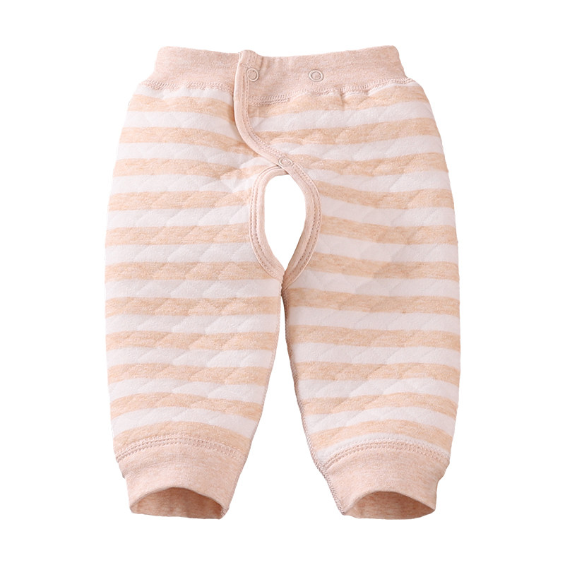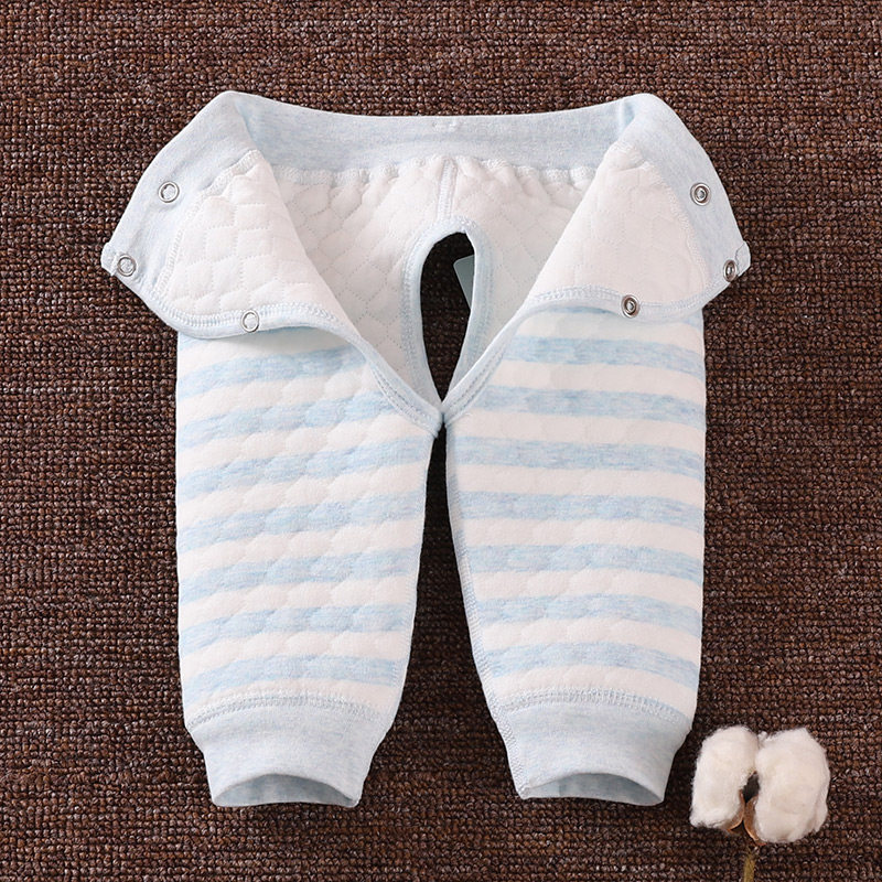 Newborn baby warm cotton pants male and female baby autumn and winter boneless double snap adjustable three-layer quilted open crotch pants