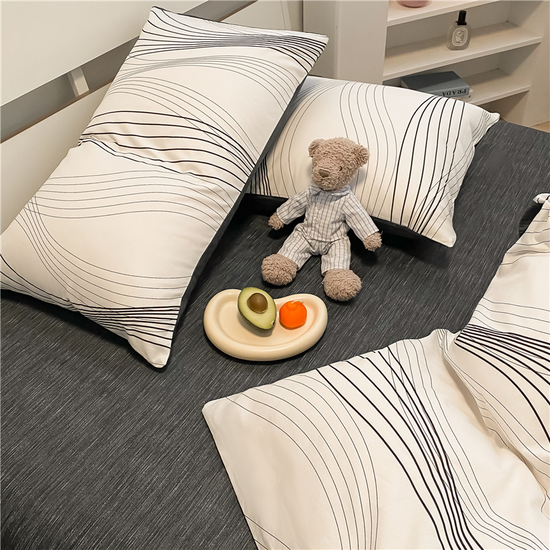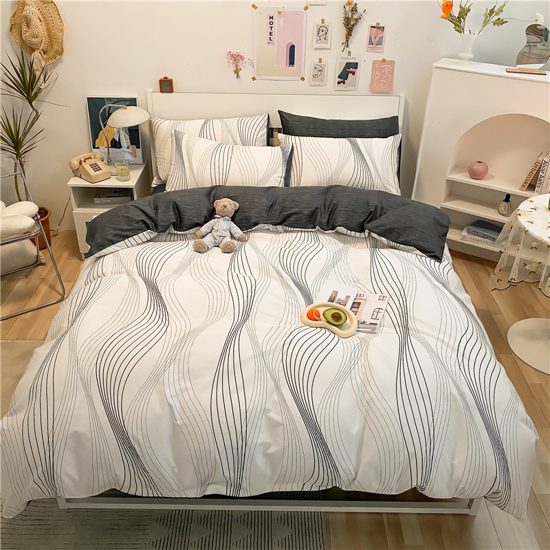 Nordic modern minimal black and white wind four pieces of pure cotton spring and summer sheets are suited for three pieces of suite
