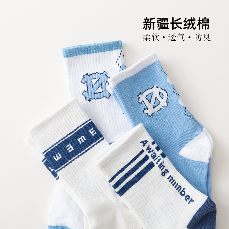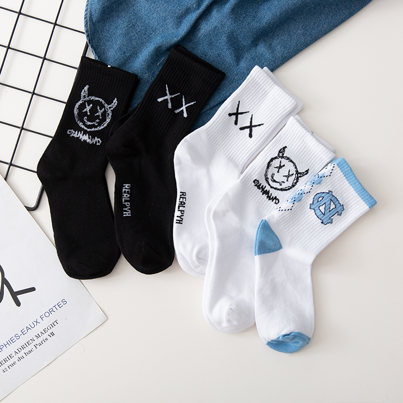 5 Double Loaded Socks Men's Autumn Winter Mid-Cylinder Socks Women Full Cotton Blue Individuality 100 Hitch Street Hip Hop Trend Stockings Sins Tide