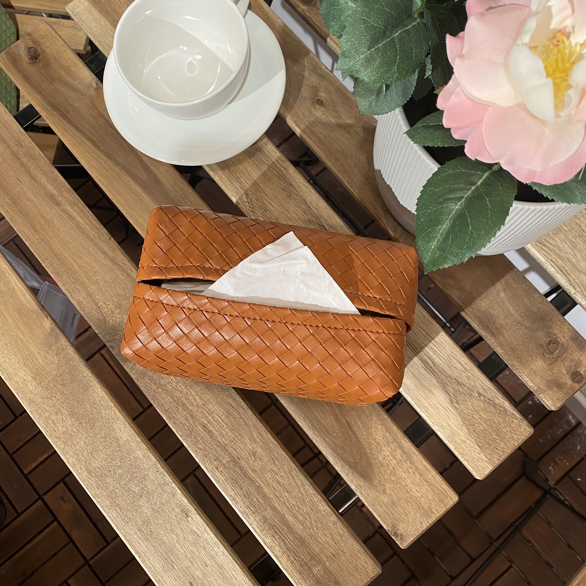 Nordic ins woven pattern tissue box light luxury simple living room model tissue box leather car toilet paper box