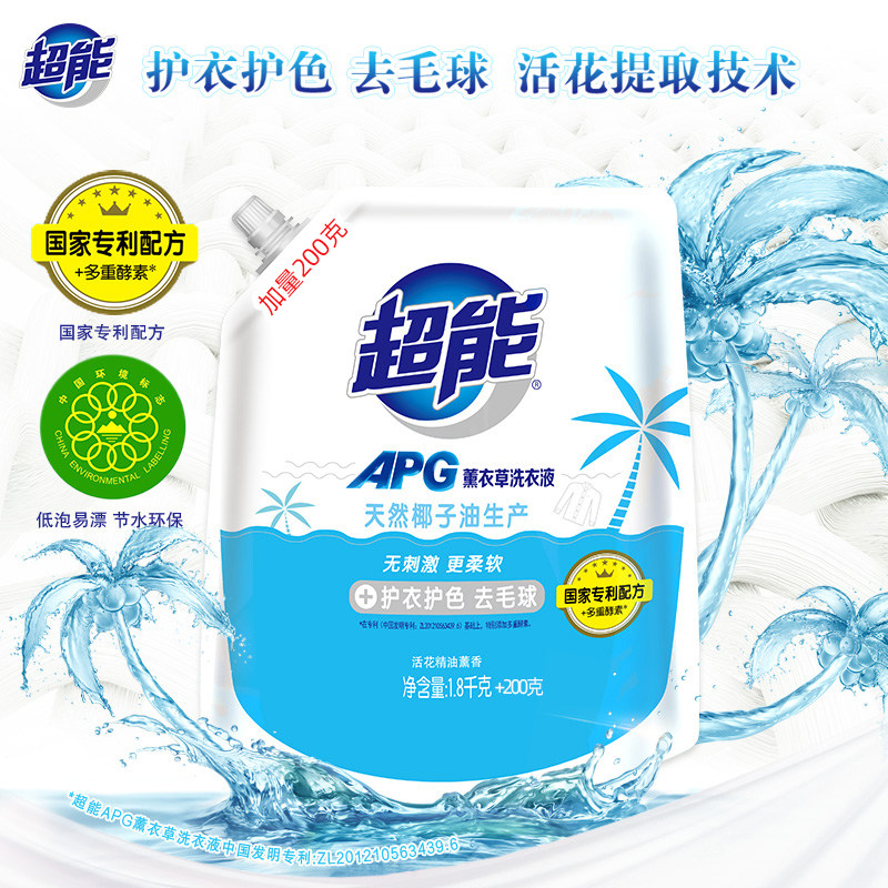 Superenergy APG laundry detergent 1 8KG 200g bagged protective clothing Color Home Nationally Patented Formula Coconut Oil