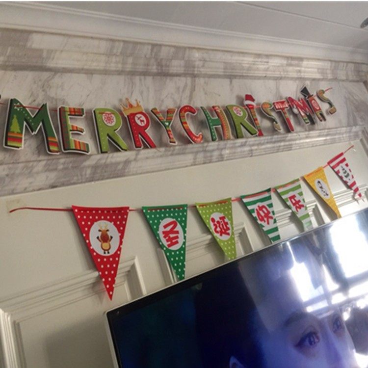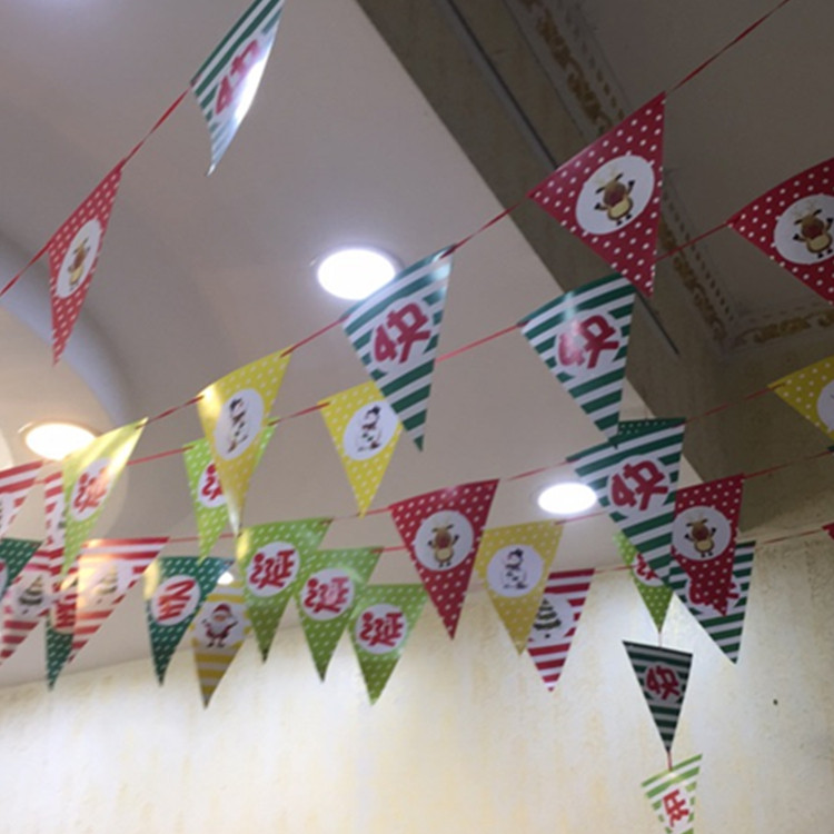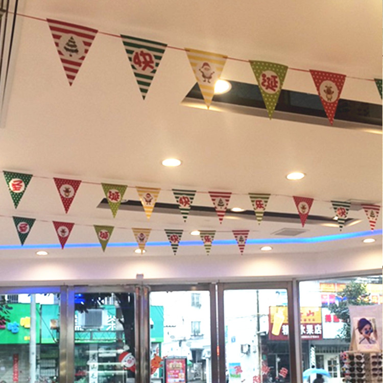 Christmas decorations pennant flag window hotel scene holiday event layout props Christmas tree paper pull flag