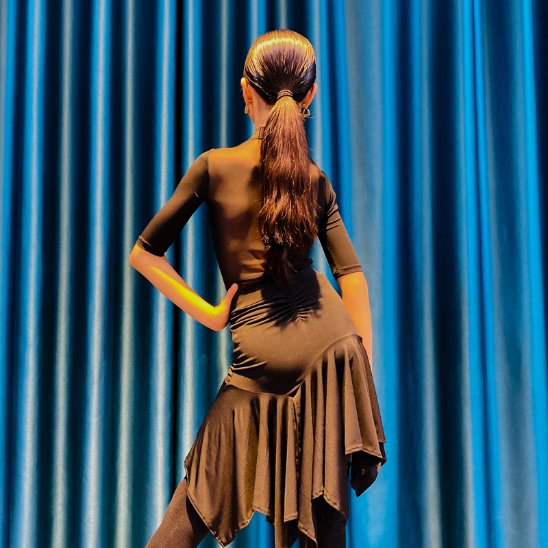 Connie Latin Dance Suit Children Professional Competition Training Clothing Web Yarn Tiblouse Blouse Dancing Half Body Dress