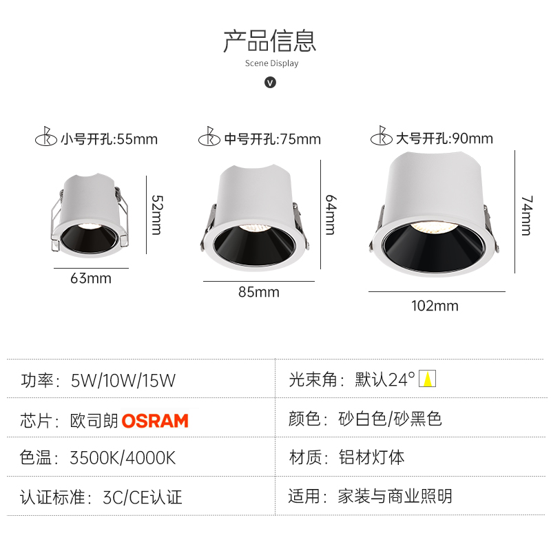 led embedded cob spotlight deep anti-glare honeycomb tube lamp home high-display finger color decoration smallpox without main floodlight