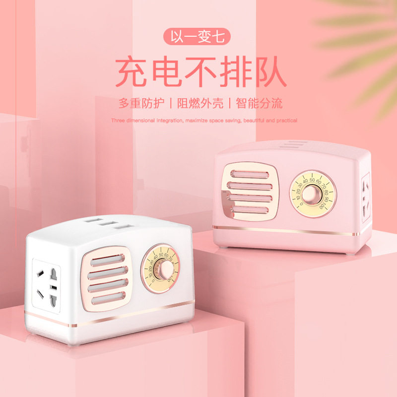 Teenage Girl Hearts Multipurpose Socket Panel Porous Cute Student Dormitory Desktop Converter Plug-in Switch Usb Platoon