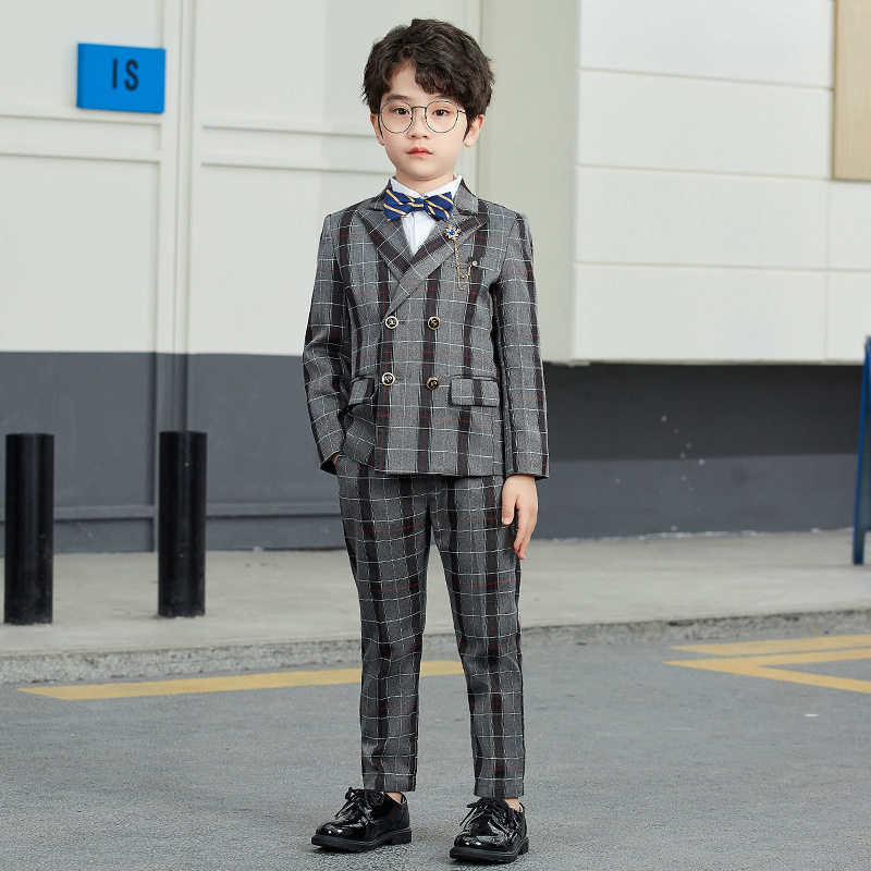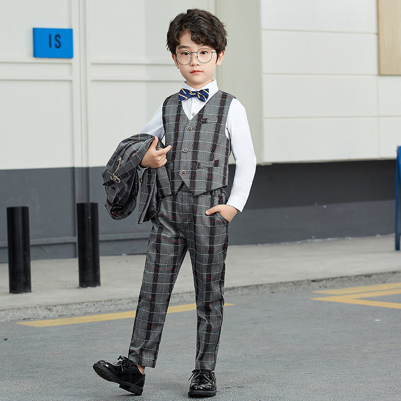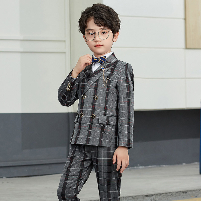 Children's suits Three sets of handsome autumn and winter new boys Double-row buckle Western suit Piano Walk Show Gown