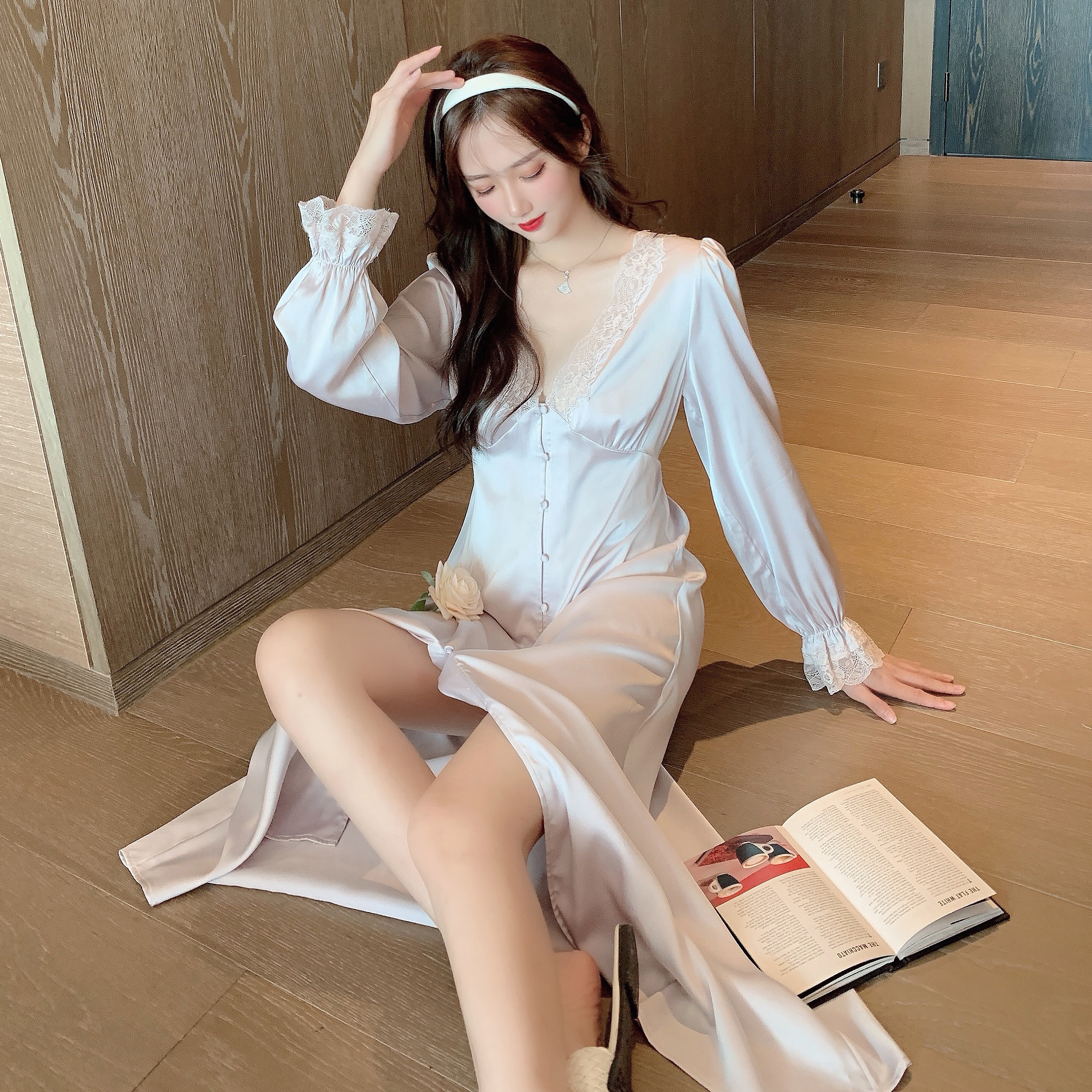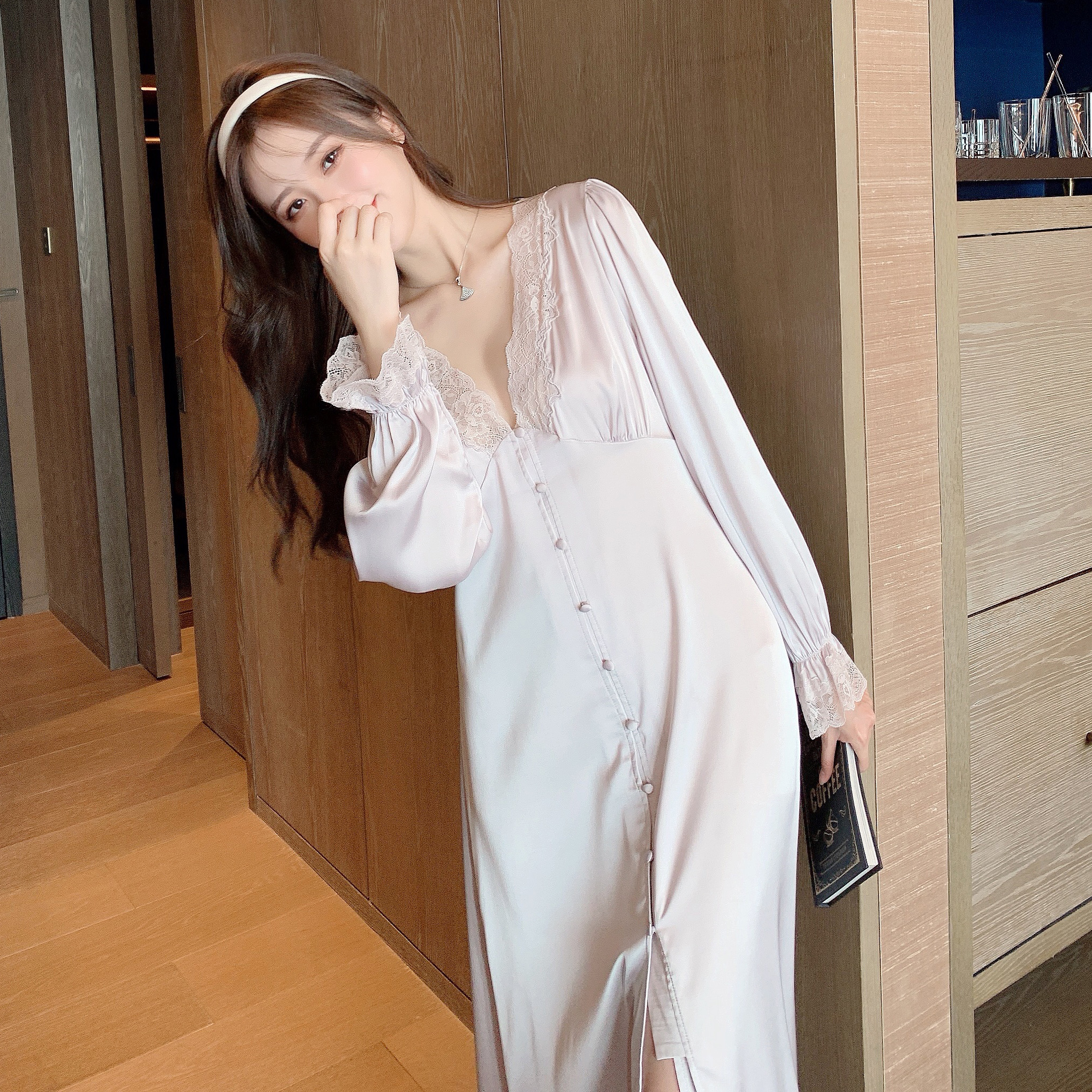 So beautiful~CHAO goddess-level pajamas women's spring and autumn French style silk sexy lace court style nightdress