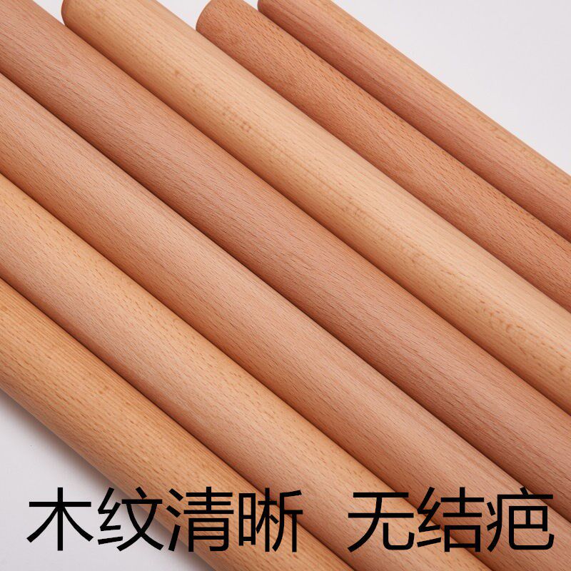 Large beech wood rolling pin, solid wood rolling stick, thickened and long round wooden stick, round wooden stick, household rolling noodles