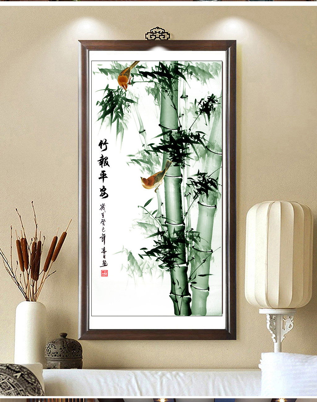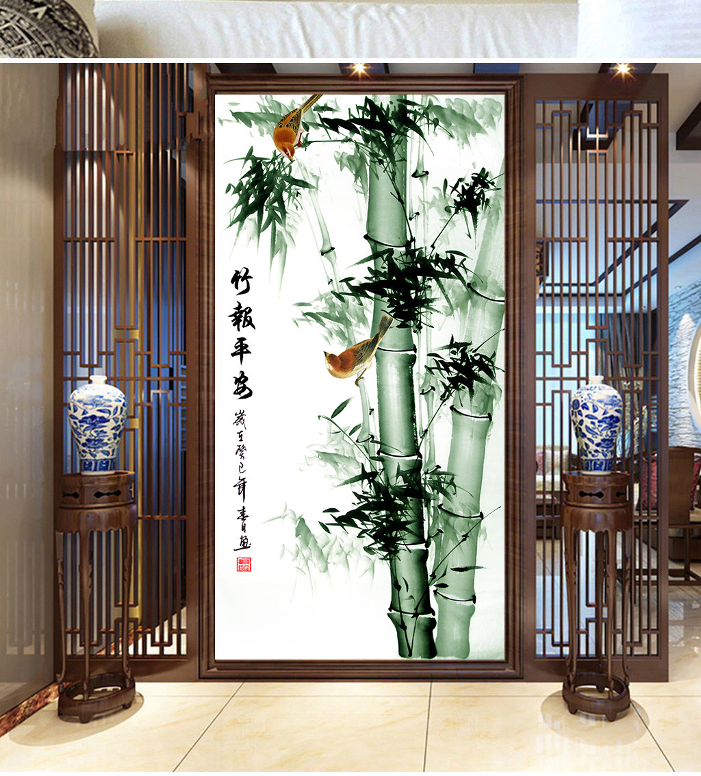 GH-239 High-definition landscape painting bamboo newspaper peace lotus hanging painting decoration hotel entrance mural Fengshui painting original picture