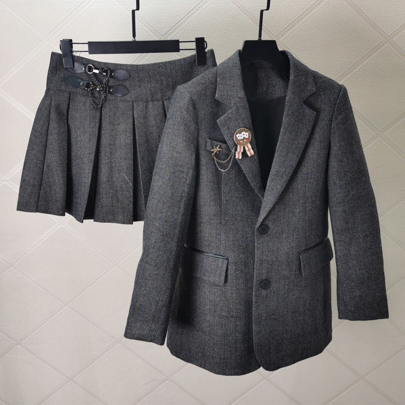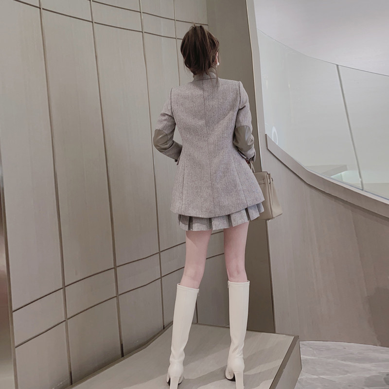 High-quality salt-style fried street British college style suit jacket women's spring and autumn pleated skirt suit suit Western style age reduction