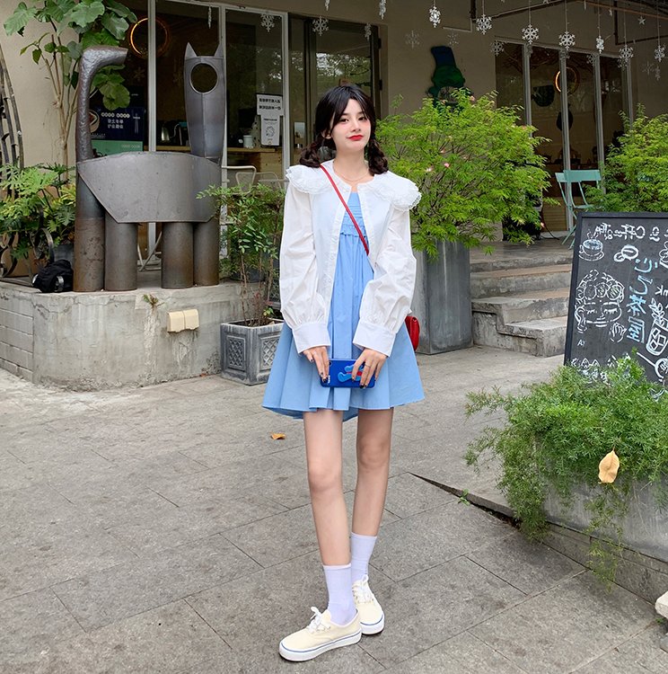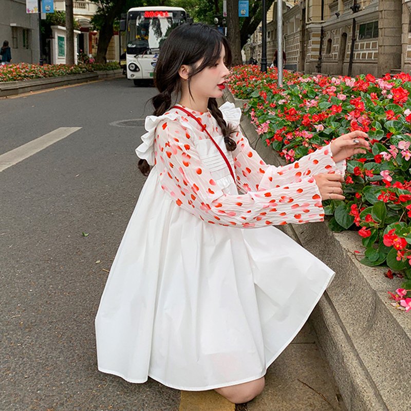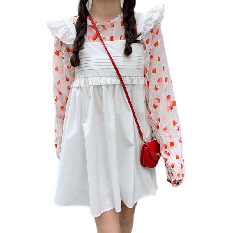 20211 4 inch socket wrench sleeve suspender dress long sleeve floral shirt set escape rose romantic girl fold