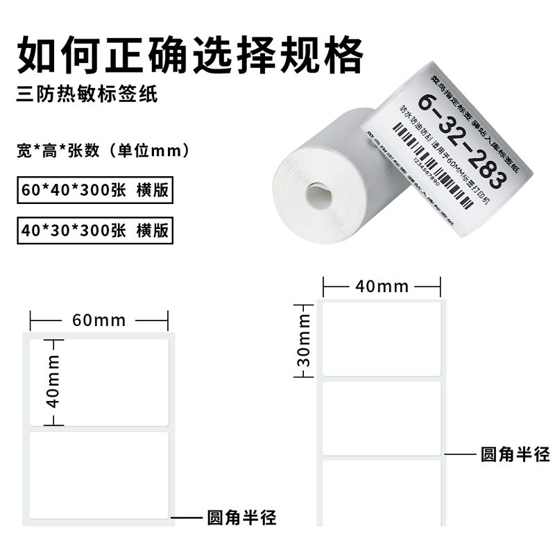 Rookie Station Label Printing Paper Hot Sensitive Paper 60x40x300 Zhang No Tube Core Three Anti-Thermosensitive Adhesive Labels Paper Rookie Express Shelves Fetch Yard stickers-Taobao