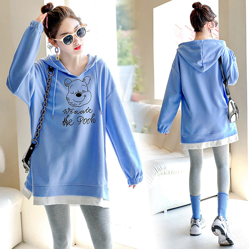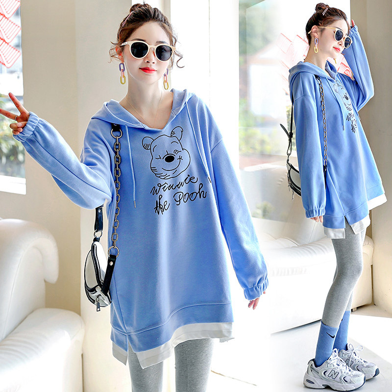 Pregnant women's clothing autumn clothing new medium and long version of blouses with large size and cap sleeve head autumn and winter fashion style suit Spring and autumn