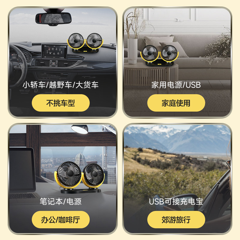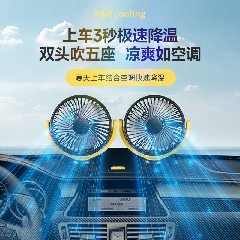 Car fan 24V large truck 12V volt car dedicated usb interface heat dissipation small double-headed fresh electric fan