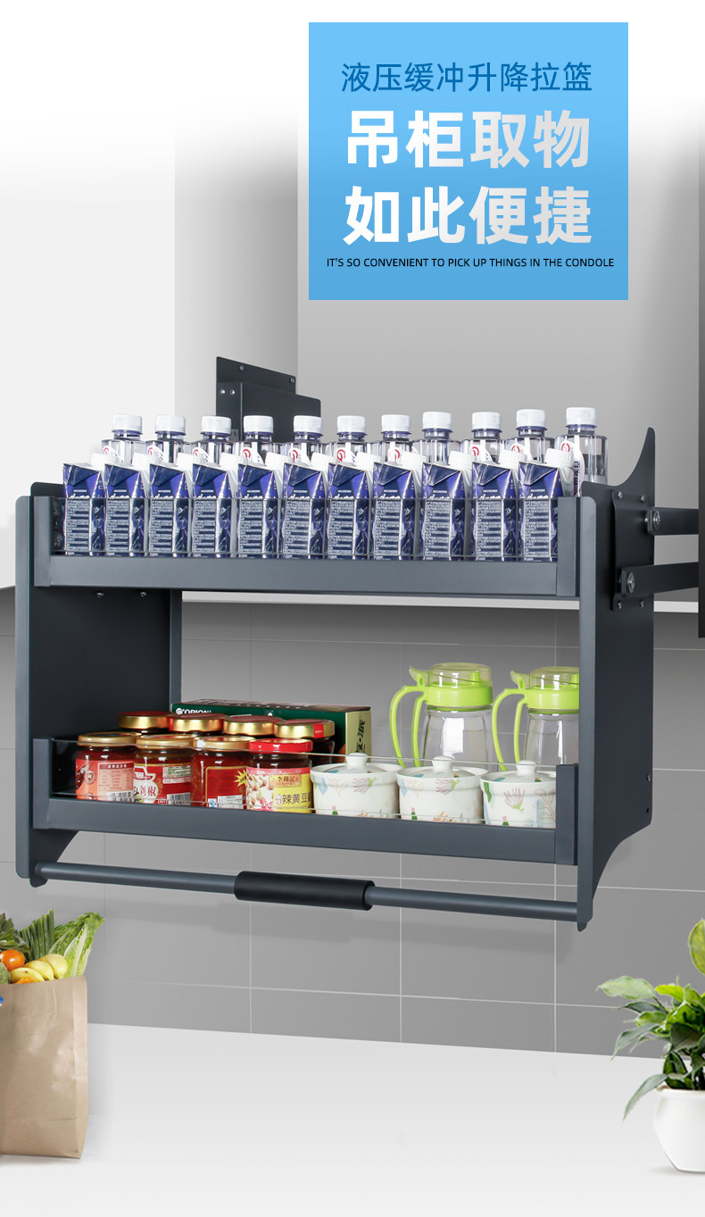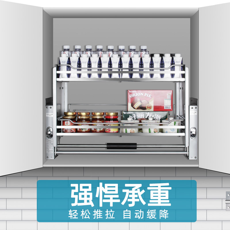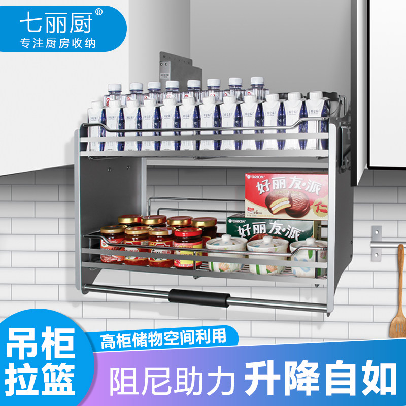 Kitchen integral cupboard pull basket hanging cabinet pull basket containing layer frame open door type damping telescopic lower pull shelf seasoning pull basket