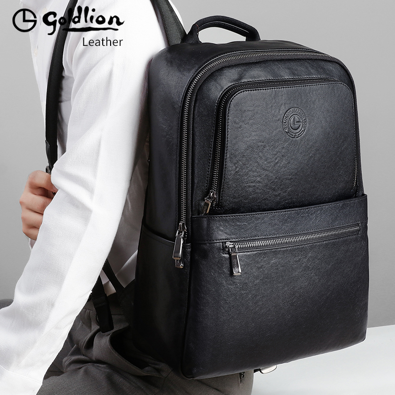 Jinli Men's Bag with Shoulder Bag Men Business Leather 2022 New Buffalo Travel Backpack Large Capacity Computer Pack
