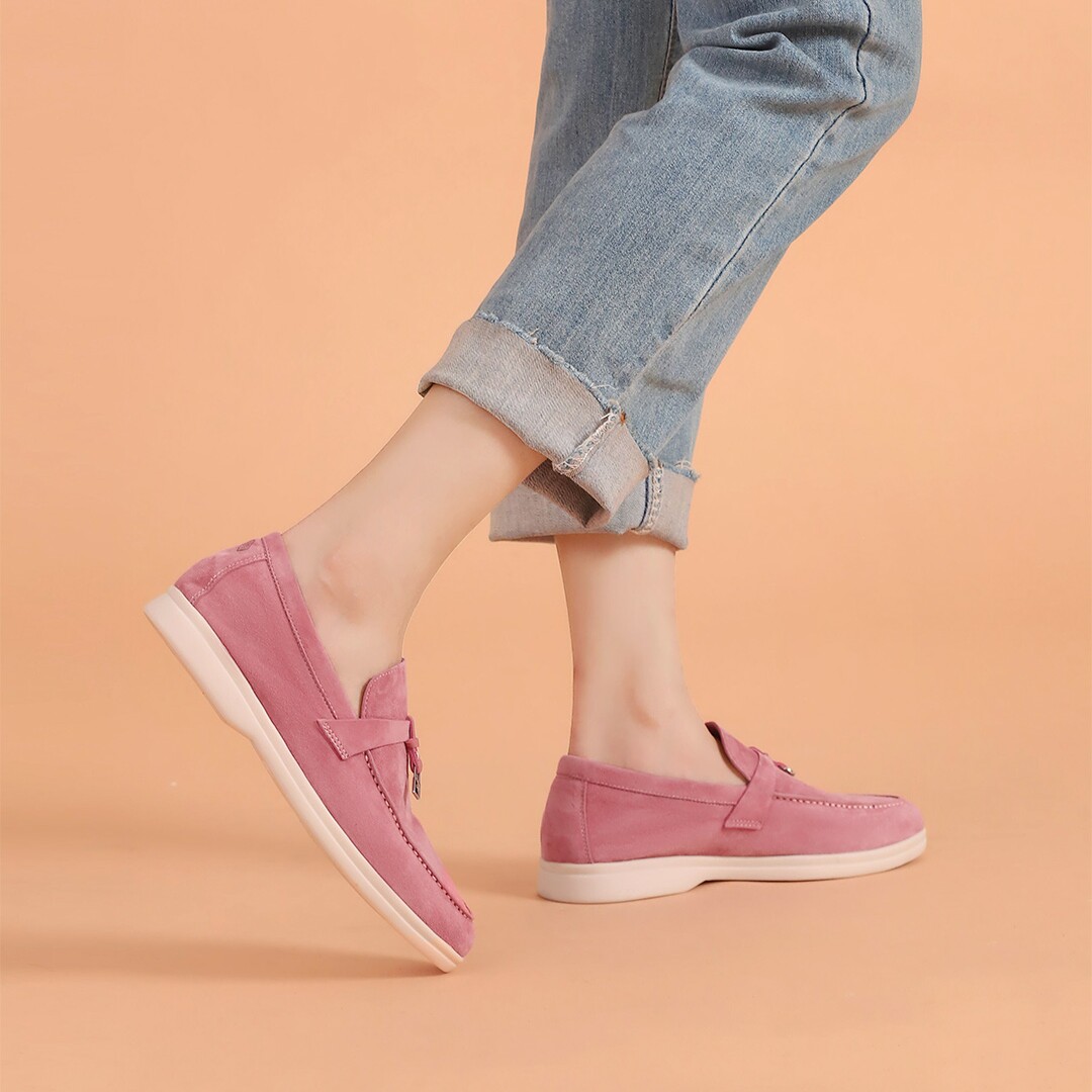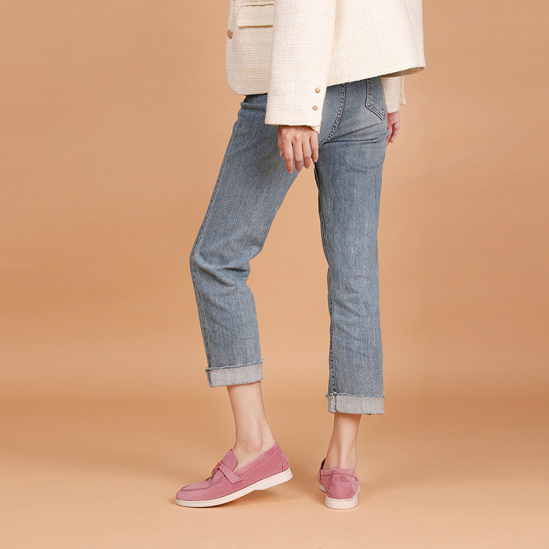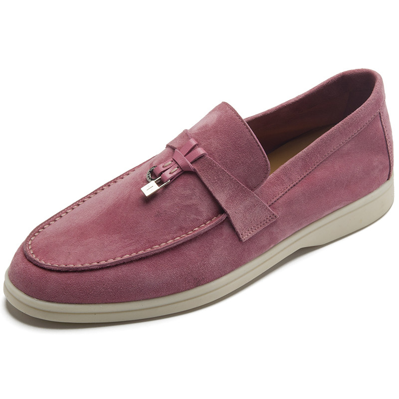 Deona cherry blossom pink cashmere nubuck leather one pedal soft bottom loafer women's spring and autumn new casual bag shoes