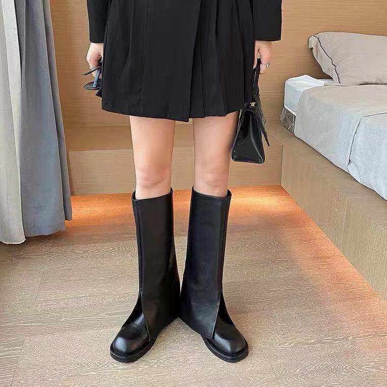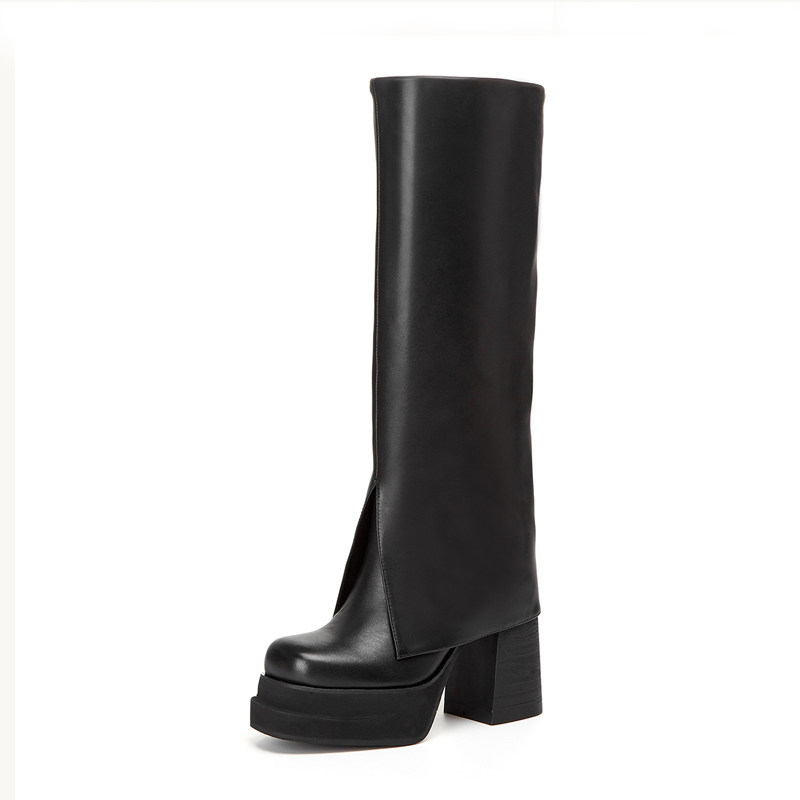 One-step fried street autumn and winter new high-tube full leather high-heeled fashion boots fashion but knee-length boots Martin boots women - Taobao