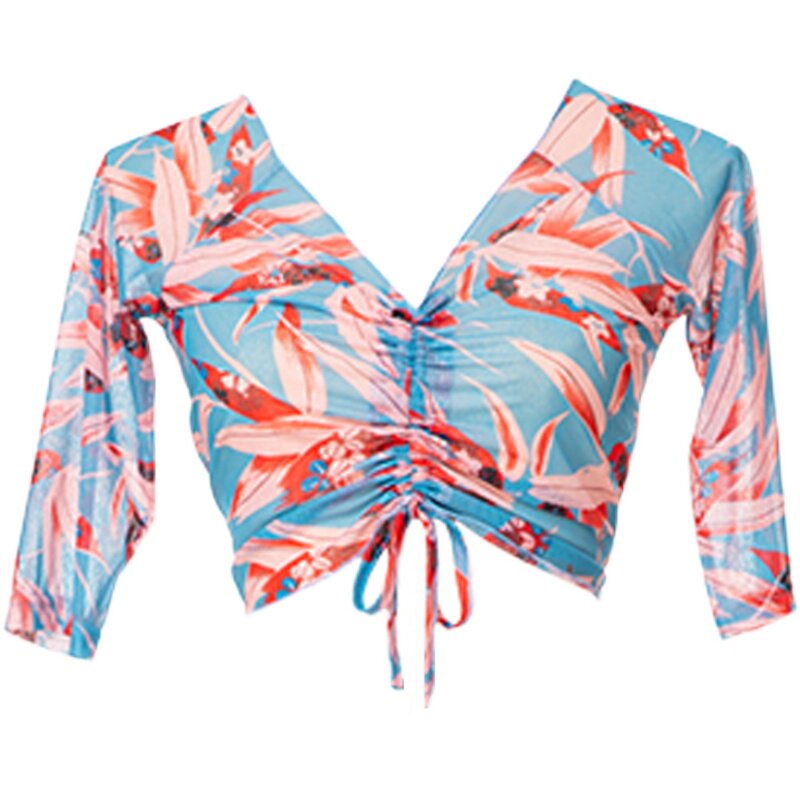 Belly dance tops 2021 new mid-sleeve V-neck fashion printing dance costumes Oriental dance practice clothes dance clothes summer