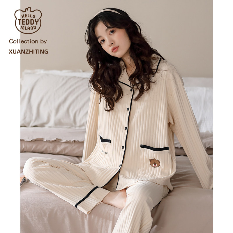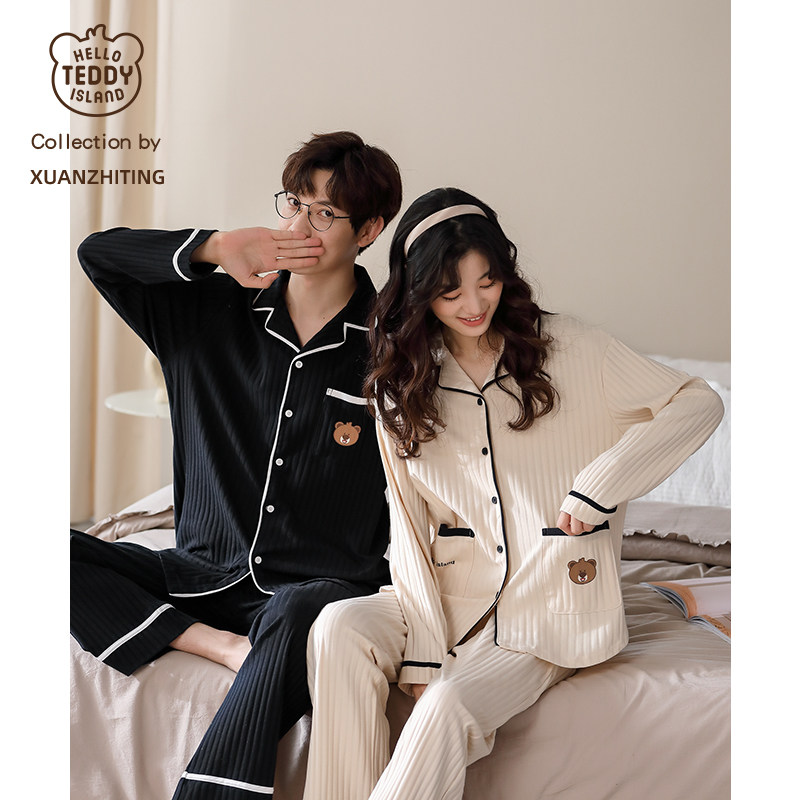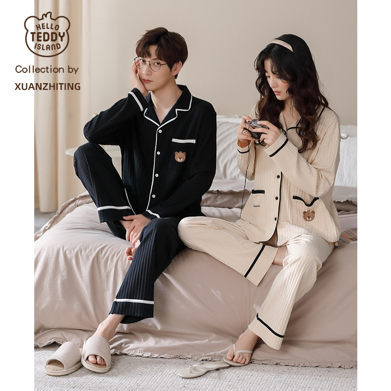 Couples pajamas spring and autumn long sleeve cotton loose oversized cotton homewear spring one men and one women set men